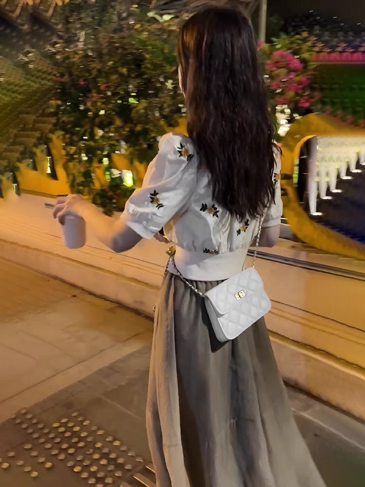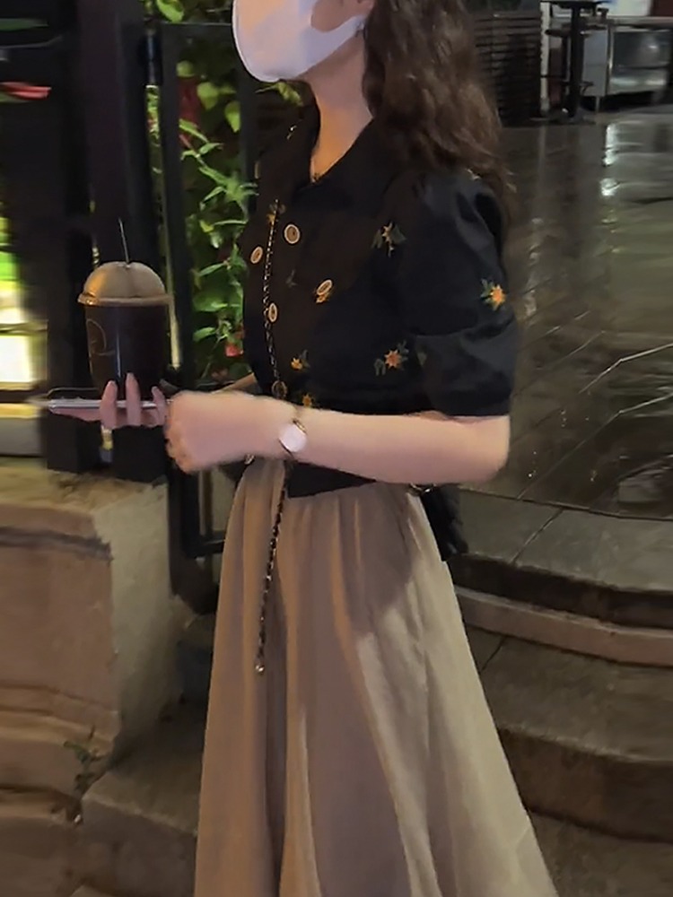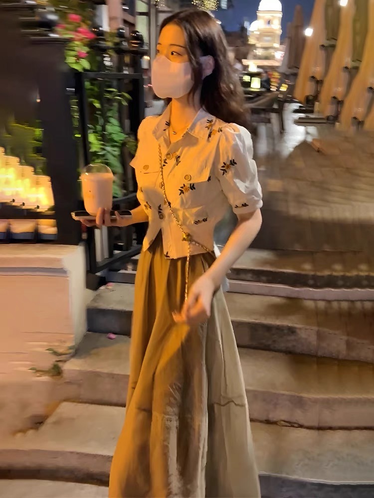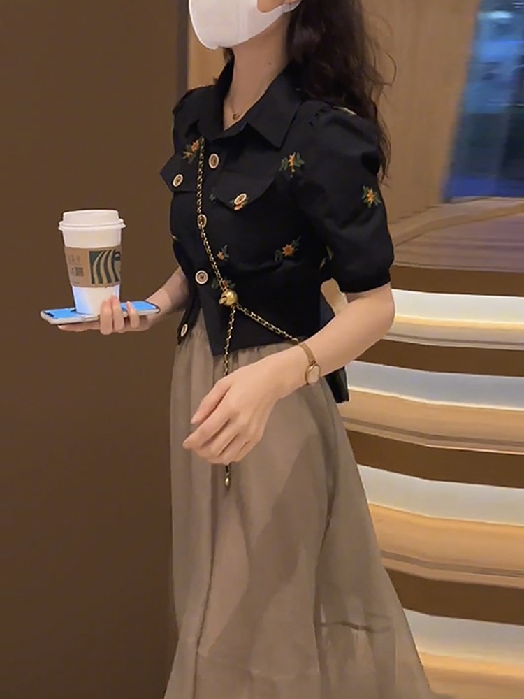短袖衬衫女设计感小众法式独特别致漂亮短款绝美泡泡袖刺绣小上衣