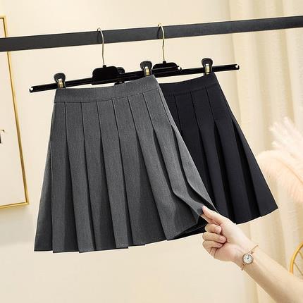 百褶半身裙女春秋新款显瘦高腰防走光学院A字黑灰色小短裙子