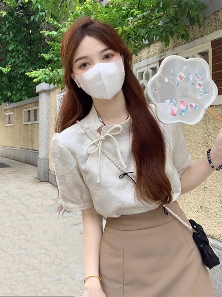 法式短袖衬衫2025新款别致小衫新中式国风女装旗袍改良上衣女夏季