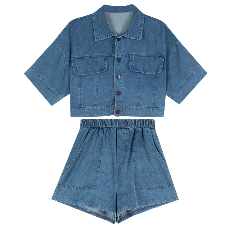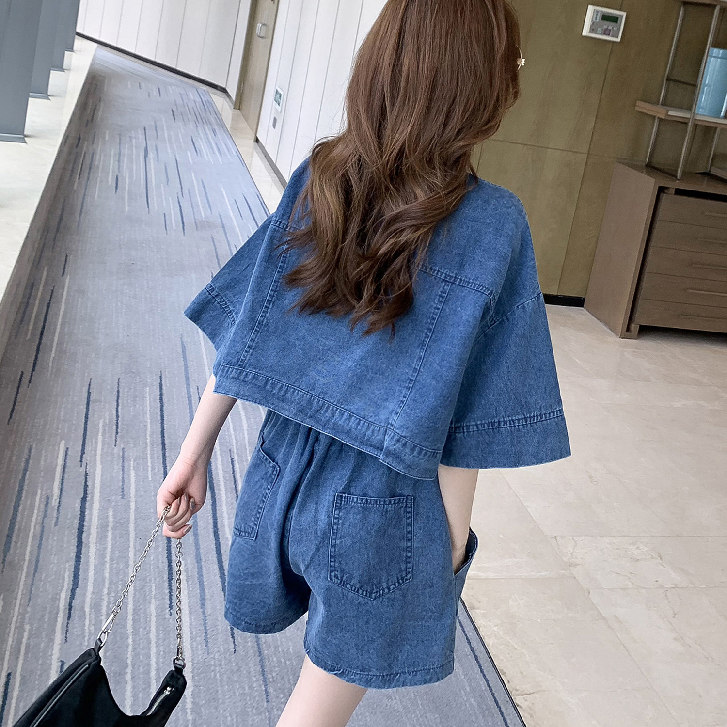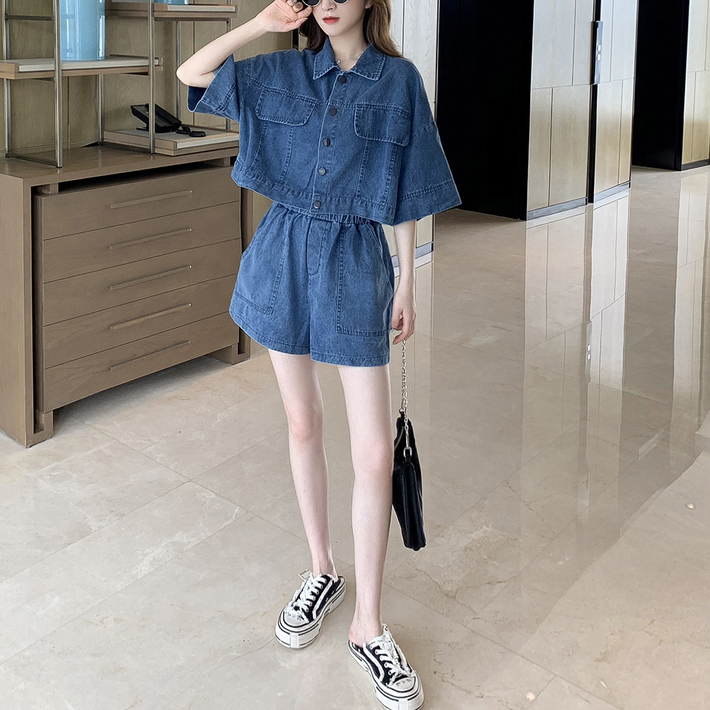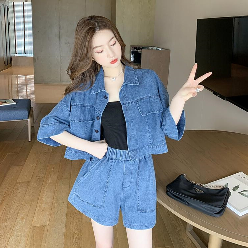 2025年夏季新款高级感炸街洋气显瘦时尚小个子牛仔短裤两件套装女