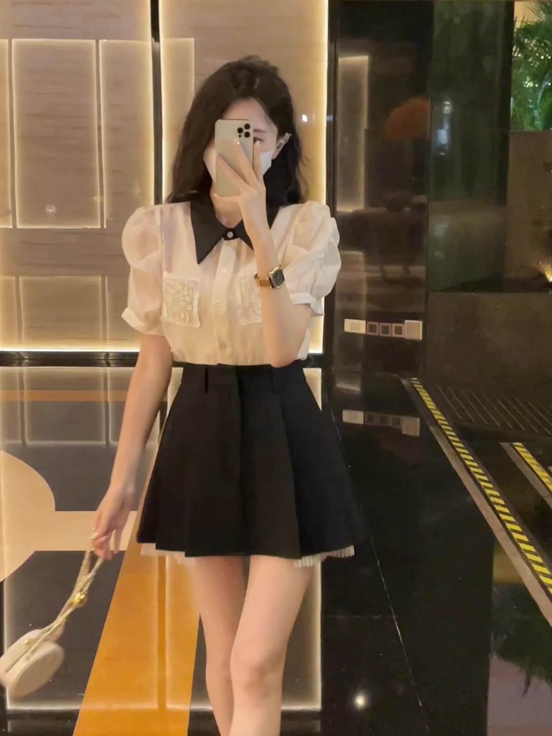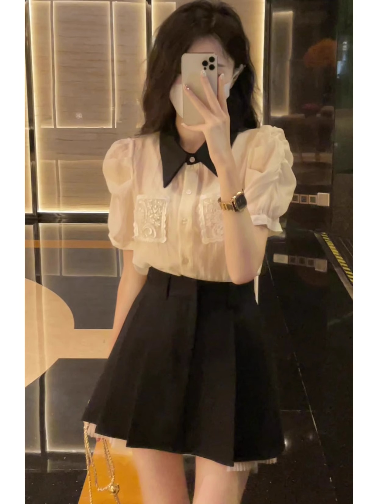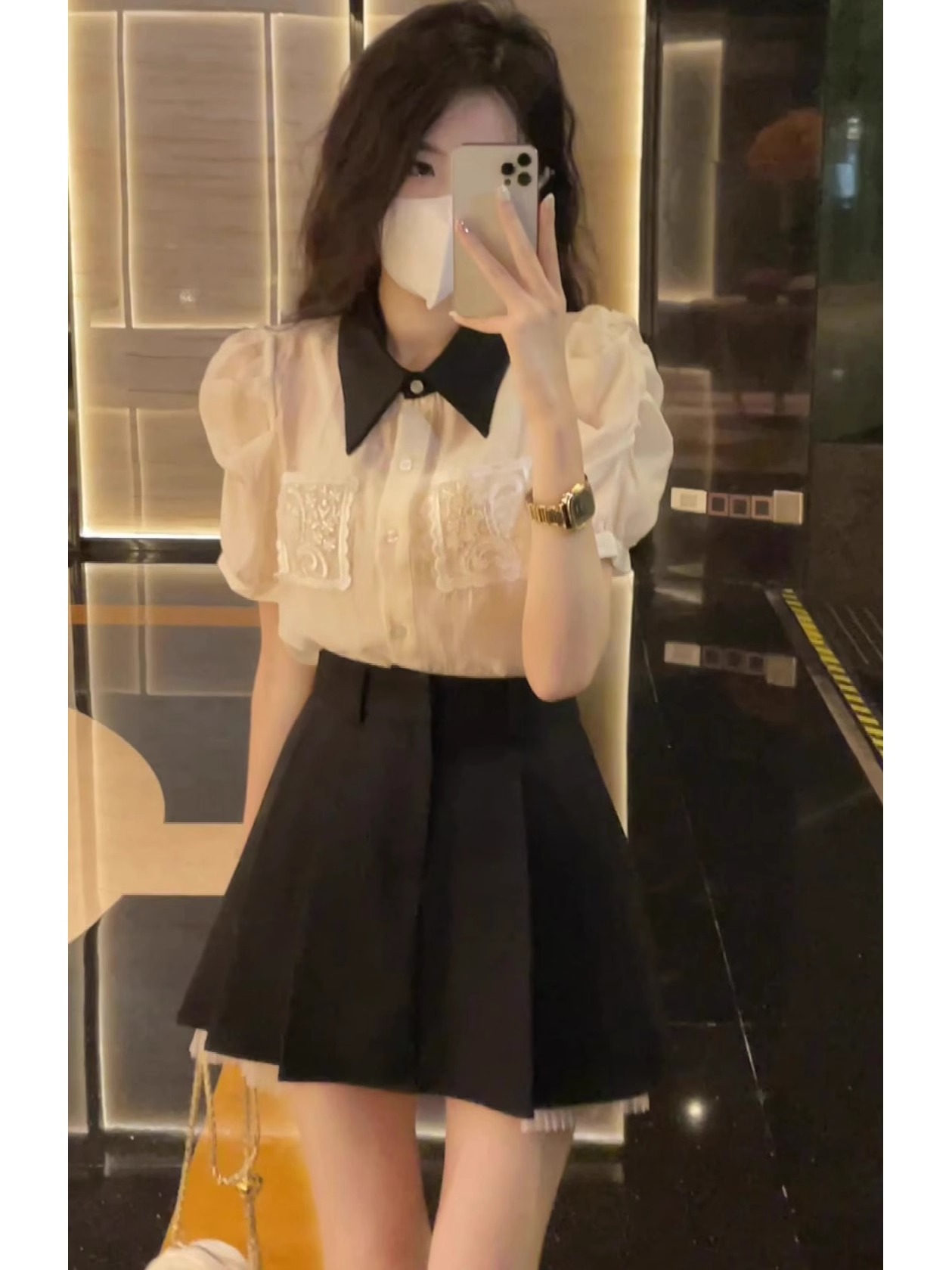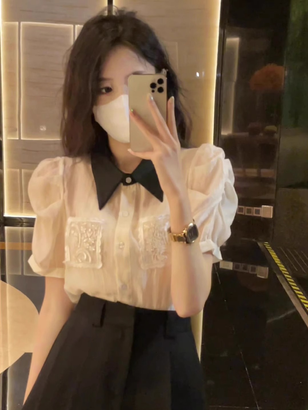 法式高级感polo领网纱雪纺衫女夏季新款宽松气质时尚百搭衬衫上衣