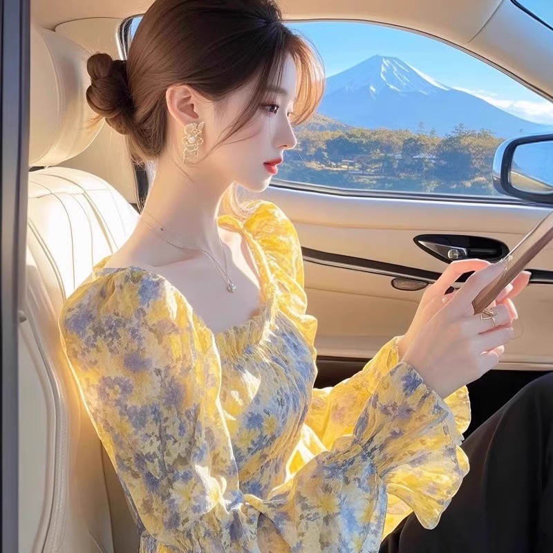 法式甜美碎花方领雪纺衬衫上衣女2025年新款独特别致漂亮洋气小衫