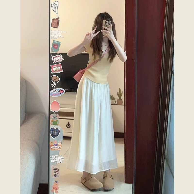 夏季高级感多巴胺穿搭减龄时尚梨型身材清纯甜美半身裙两件套装女
