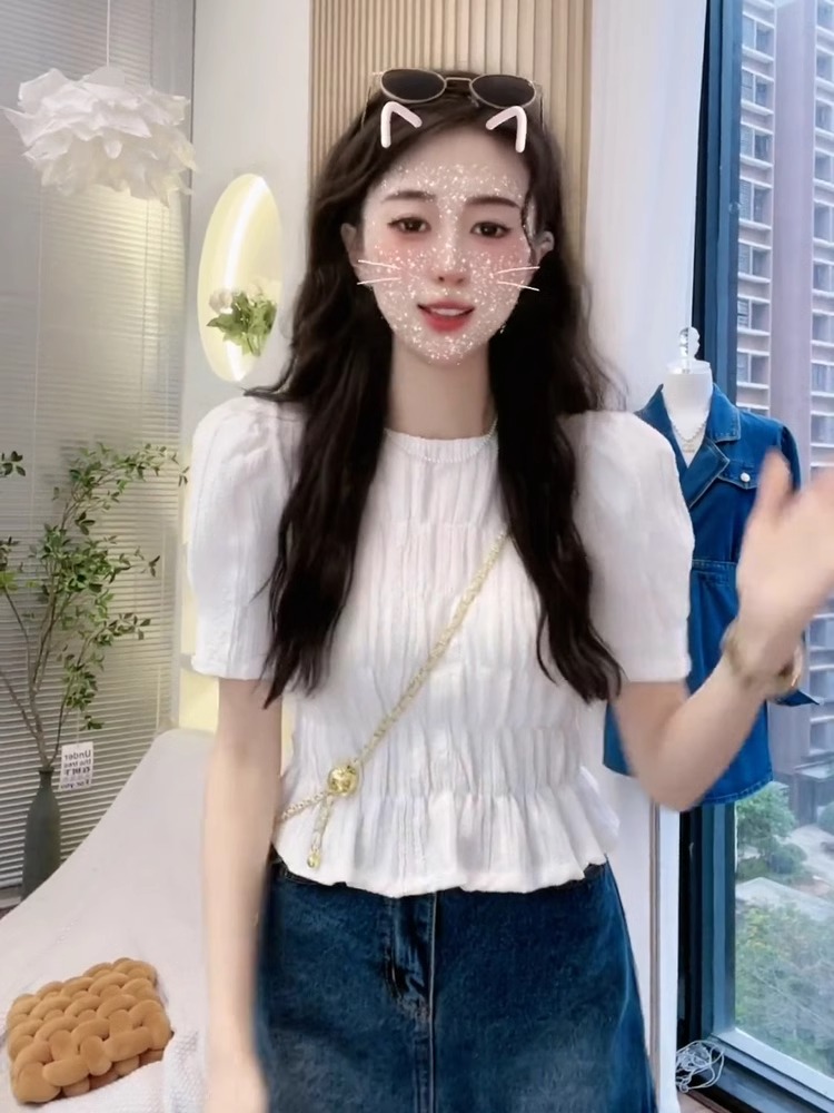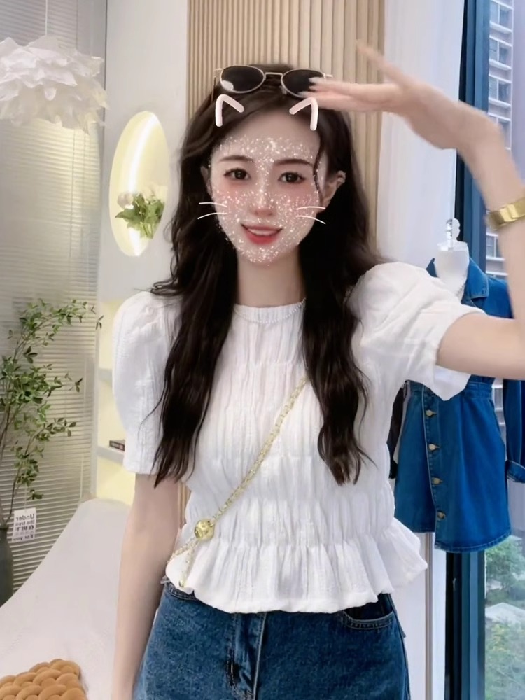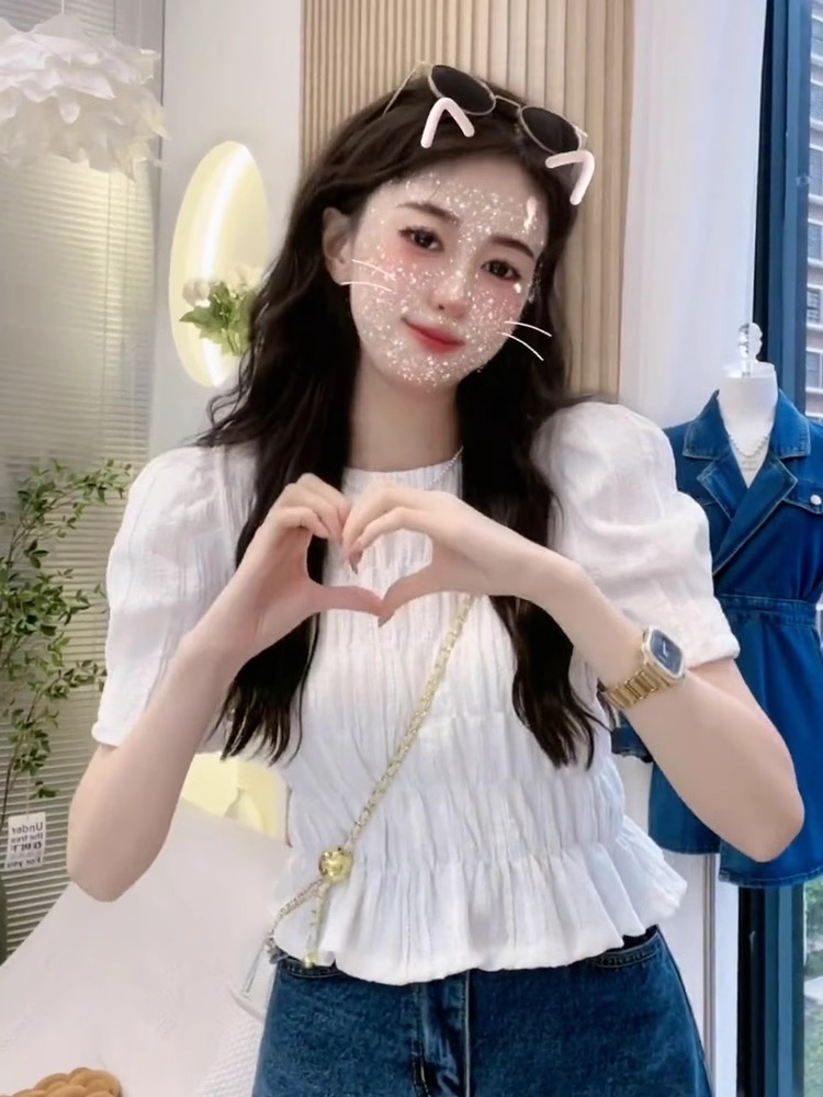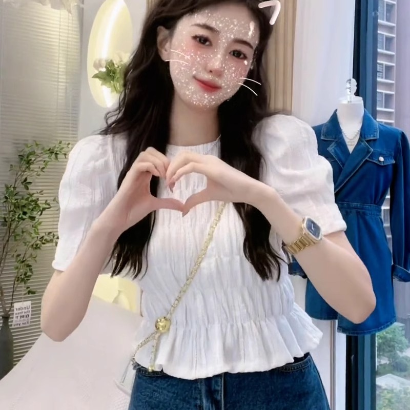 法式白色泡泡短袖衬衫女夏季新款薄款设计感小众气质百搭雪纺上衣
