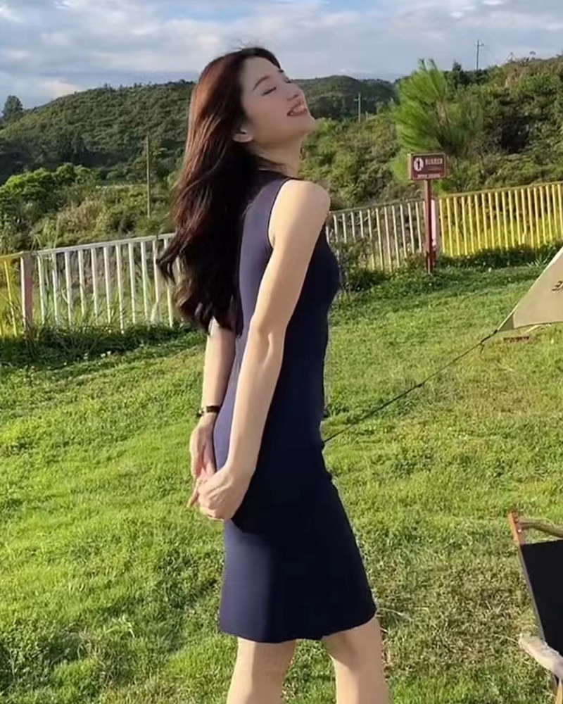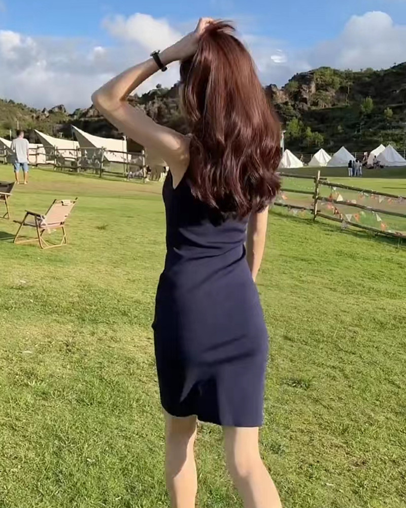 冰丝针织无袖背心连衣裙女夏季新款内搭修身圆领中长款包臀裙
