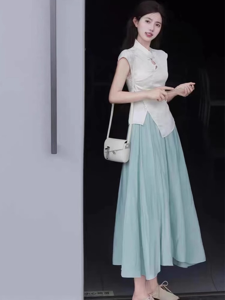 夏日穿搭洋气时尚高级感通勤韩版显瘦新中式国风半身裙两件套装女