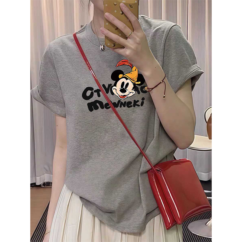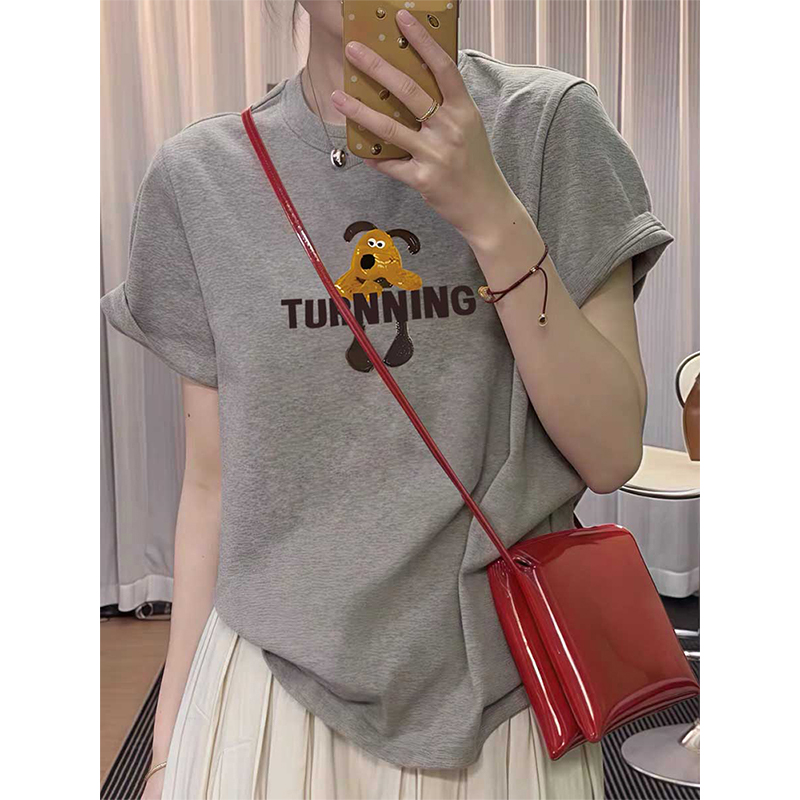 正肩纯棉短袖t恤女士2025新款流行时尚百搭洋气高级灰色上衣夏季