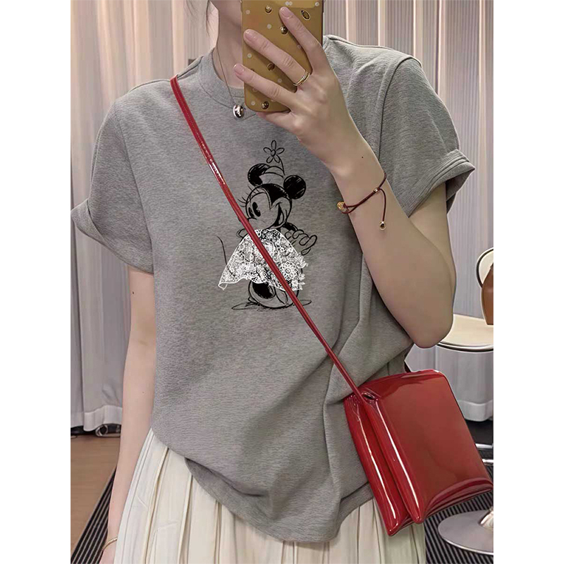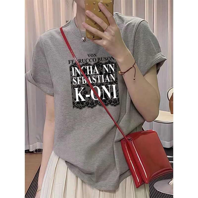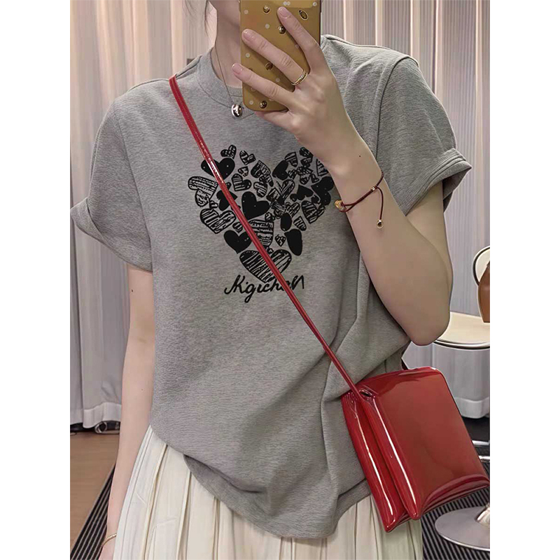 2025新款正肩纯棉短袖t恤女装时尚百搭设计感小众灰色上衣夏季潮