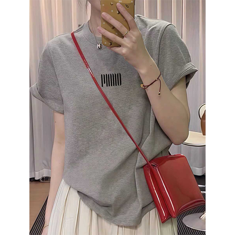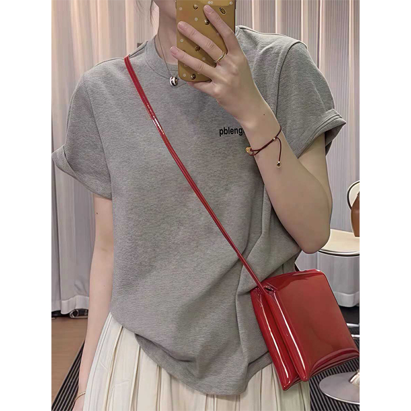2025新款正肩纯棉圆领短袖t恤女装时尚百搭洋气休闲灰色上衣夏季