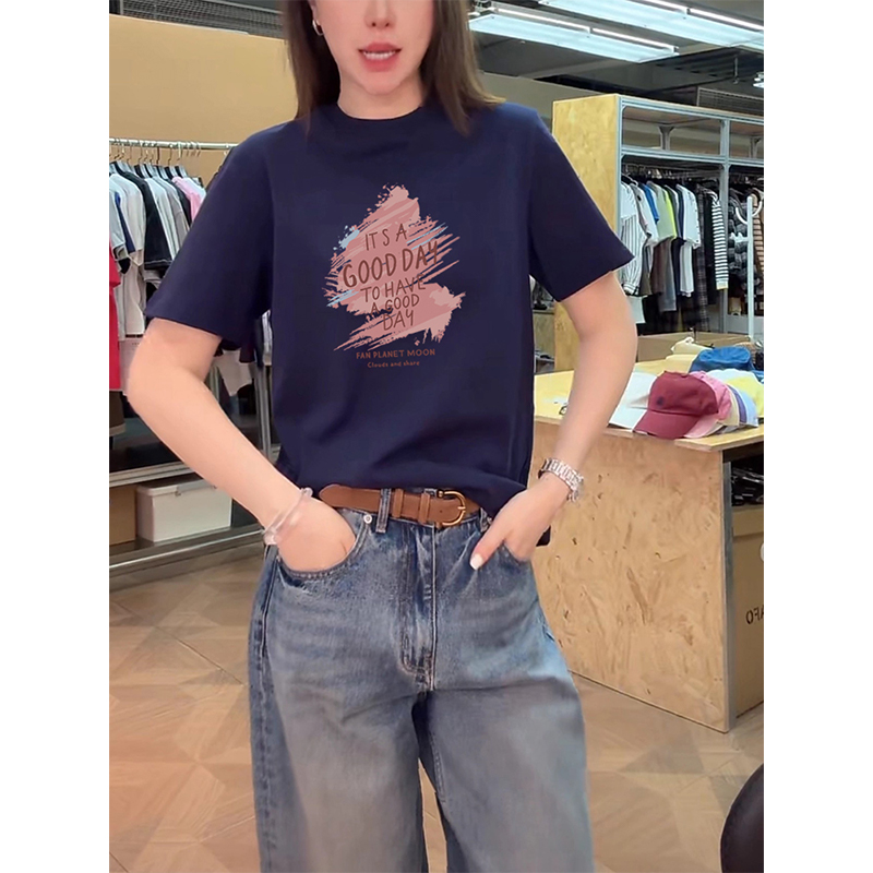 2025新款正肩纯棉短袖t恤女设计感小众时尚百搭洋气紫色上衣夏季