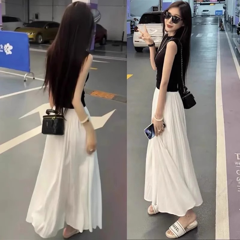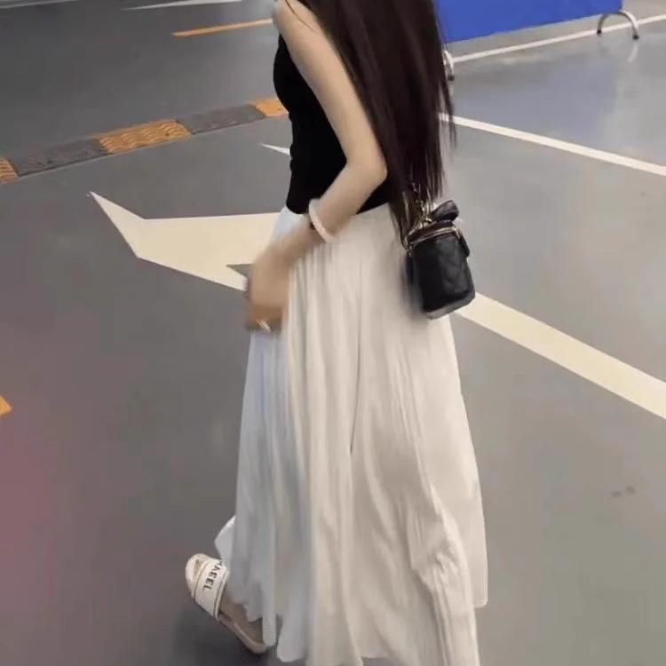 白色波点半身裙女夏季新款高腰a字显瘦中长款裙子法式小个子伞裙