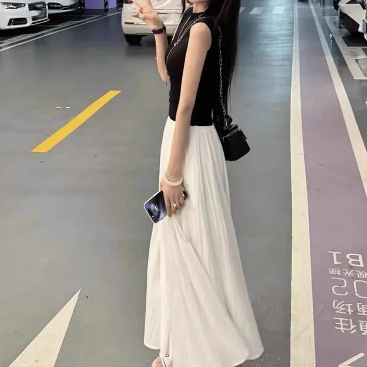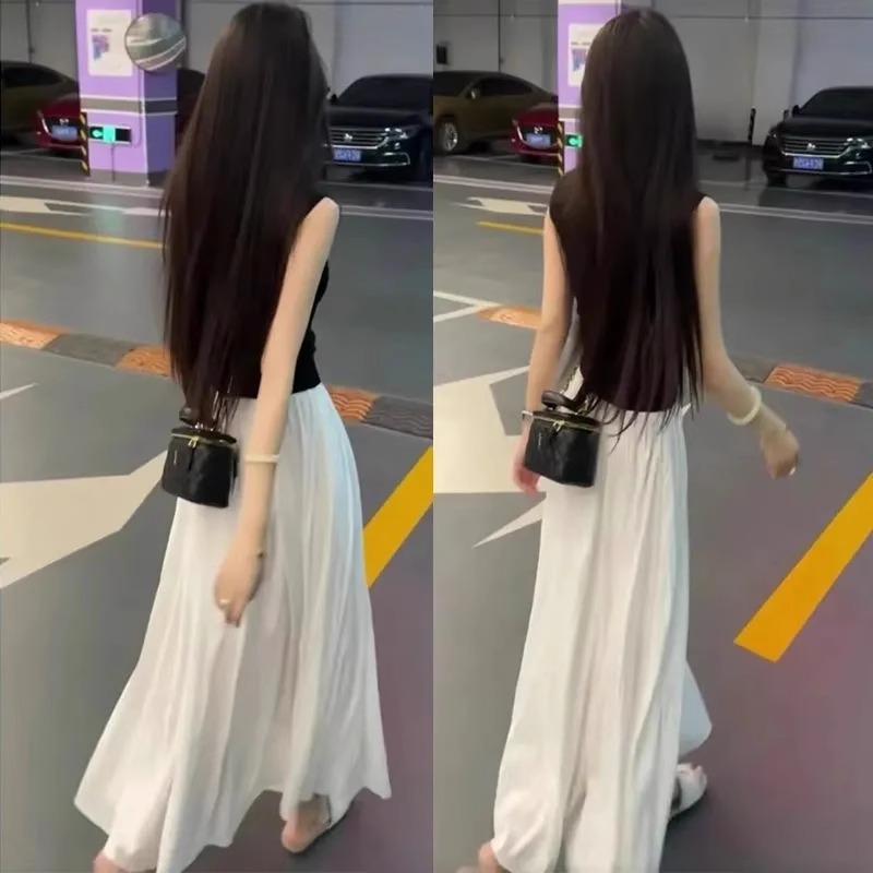 黑色上衣+白色裙子