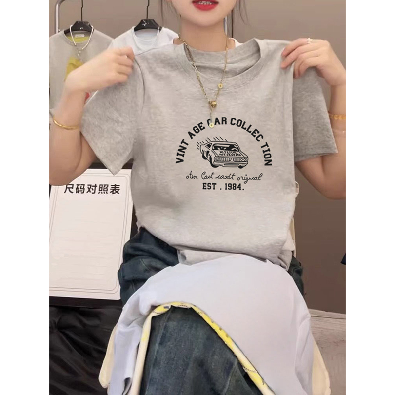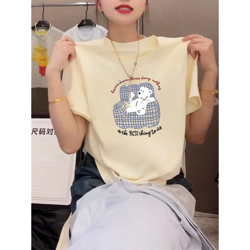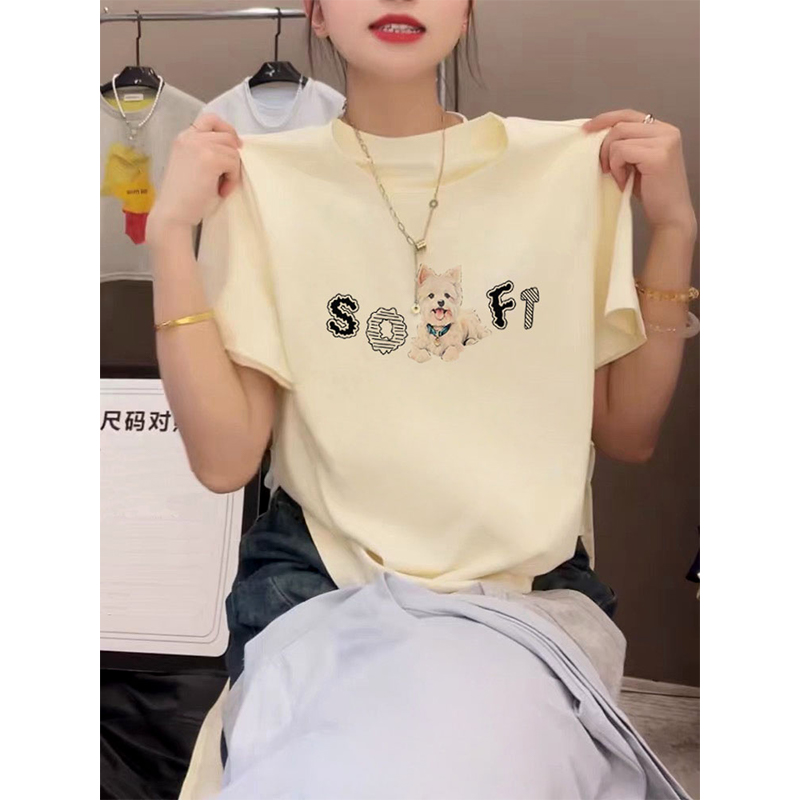 小众设计感正肩纯棉短袖t恤女2025新款时尚百搭杏色上衣体恤夏季