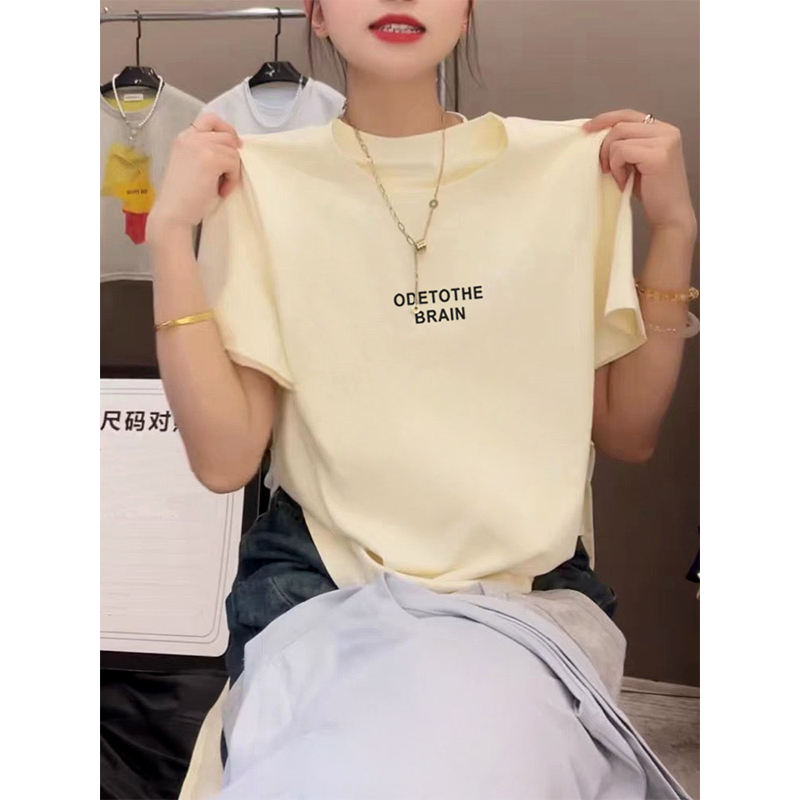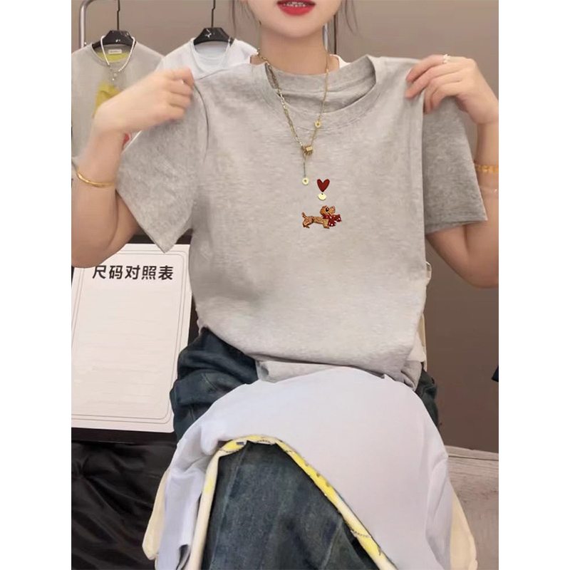 正肩纯棉圆领短袖t恤女士2025夏季新款小众时尚百搭宽松休闲上衣