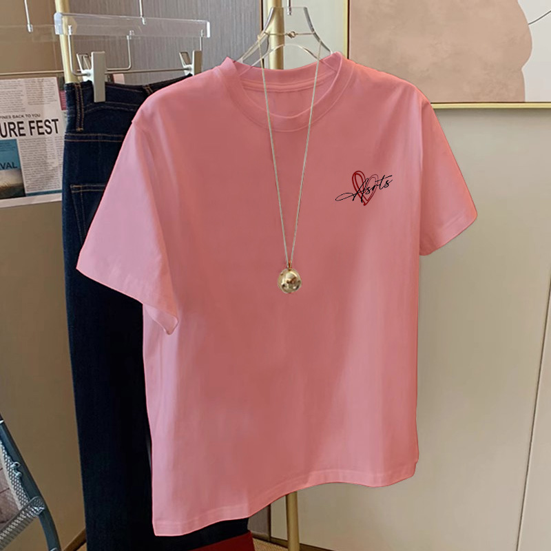 2025夏季新款全棉白色短袖t恤女宽松百搭印花小个子时尚显瘦上衣