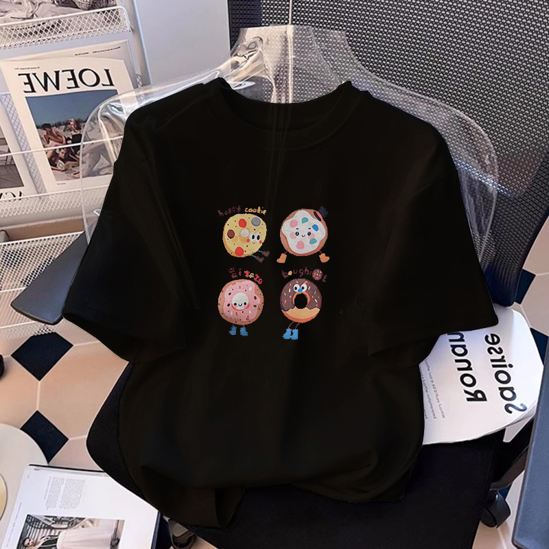 2025夏季新款粉色短袖t恤衫女宽松百搭显瘦减龄洋气卡通印花上衣