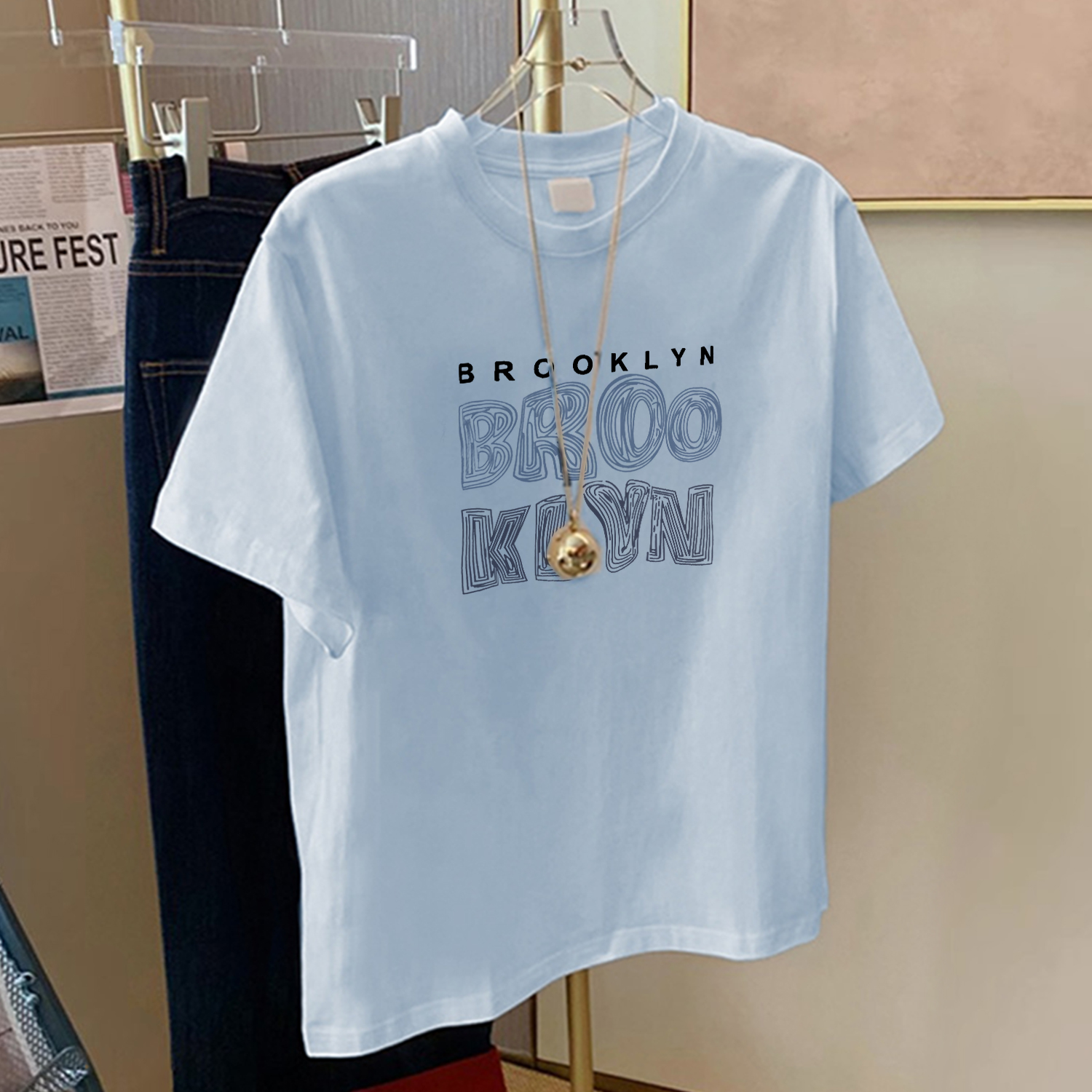 2025夏季新款灰色全棉短袖t恤女宽松百搭字母印花小个子爆款上衣