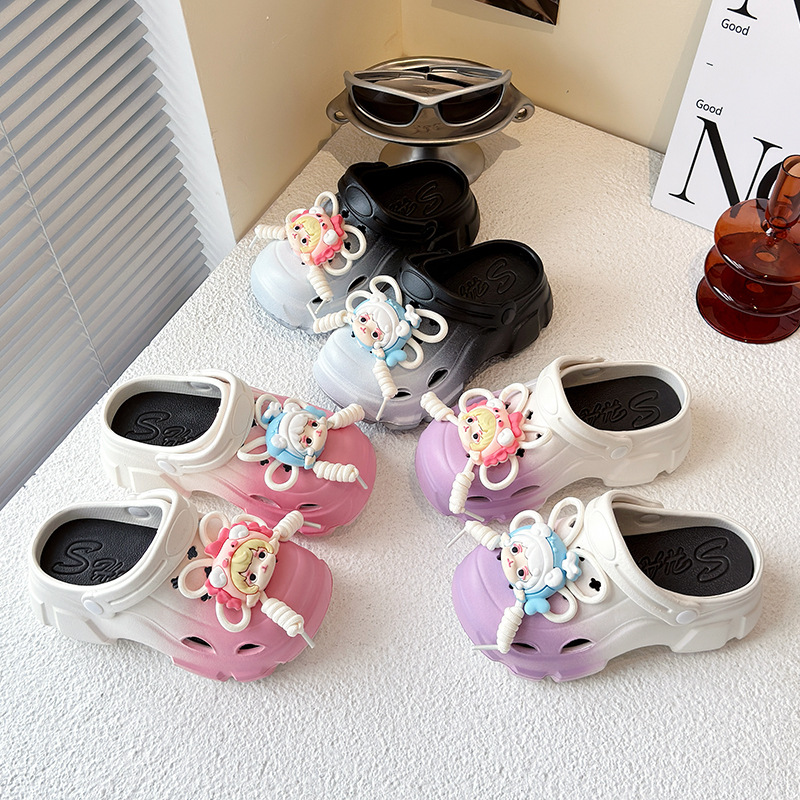 可爱百搭男女童亲子拖鞋新款饼干兔子洞洞鞋软底防滑包头凉洋气拖