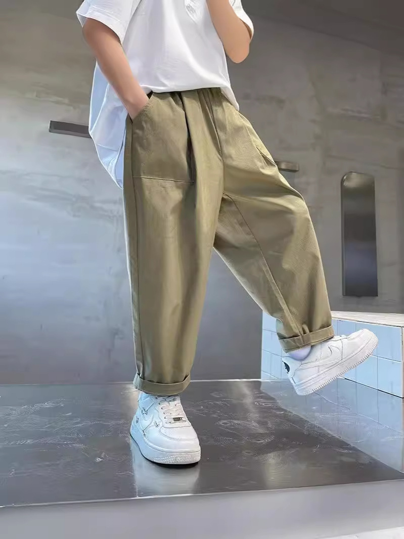儿童春夏纯色工装裤潮酷男童直筒休闲裤中大童哈伦西装裤跨境