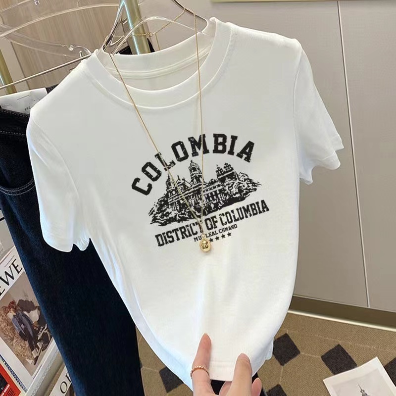 正肩短袖t恤女显瘦夏季纯棉黑色宽松体恤氛围感上衣小众百搭ins潮