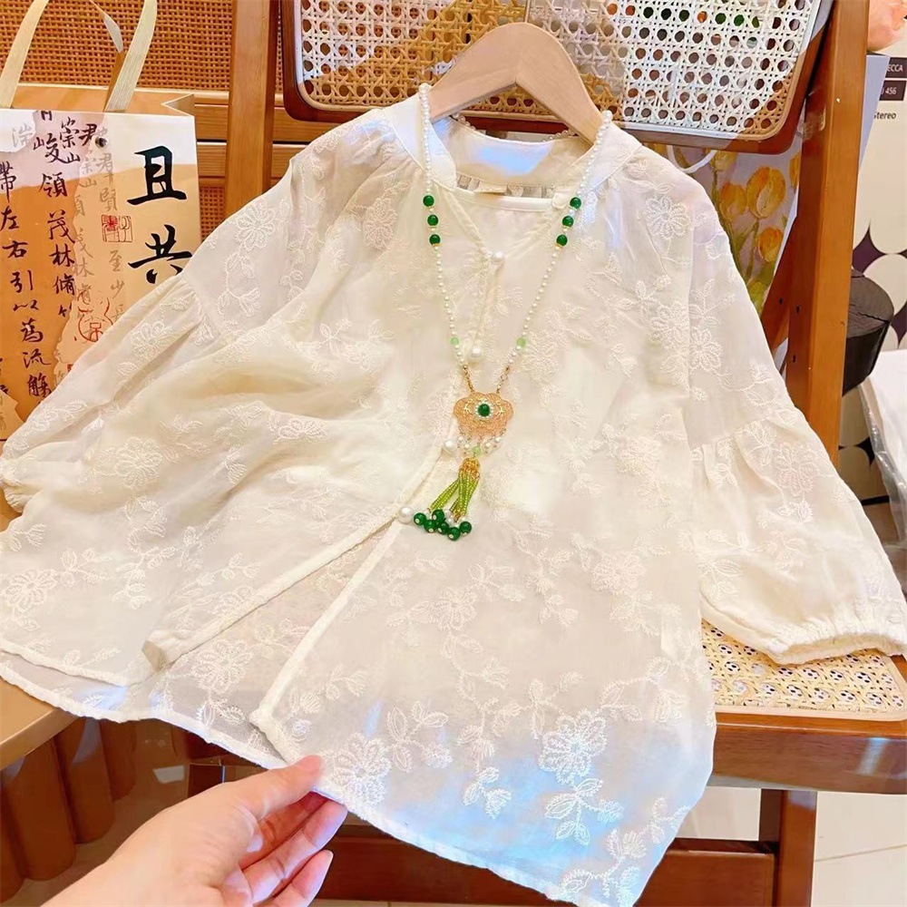 新品女童刺绣上衣背心两件套中国风2025盘扣洋气衬衫裙套装