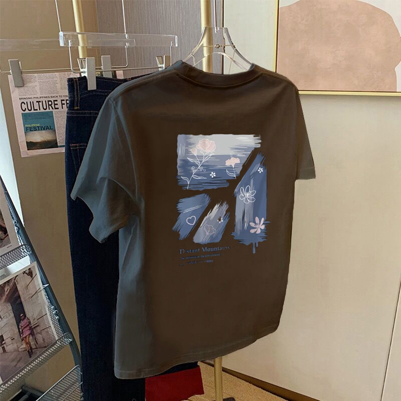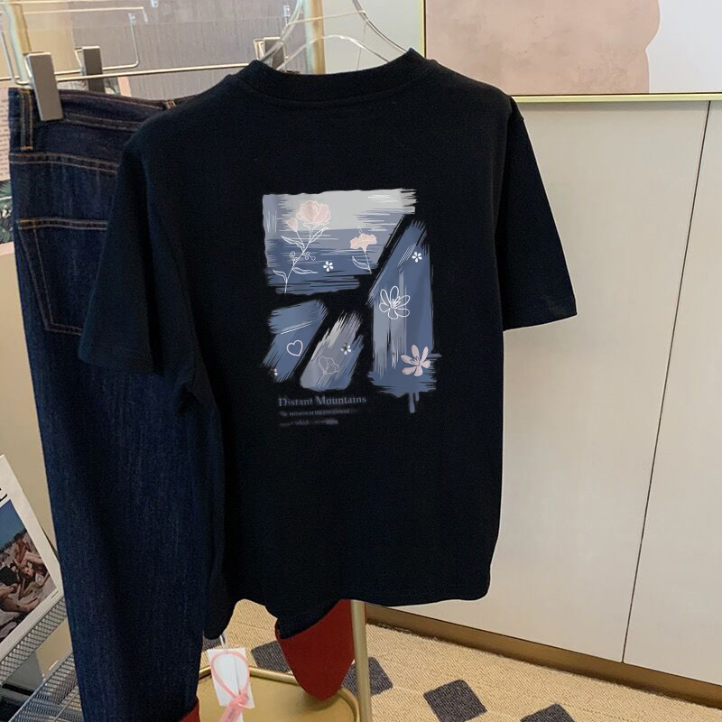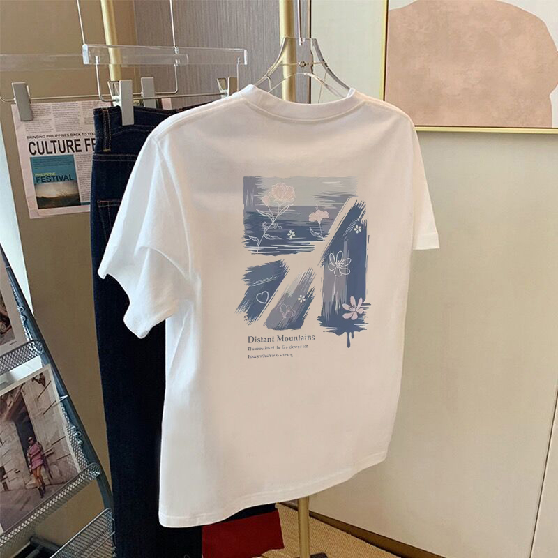 2025夏季新款设计感小众蓝色短袖t恤女宽松小个子时尚减龄上衣潮