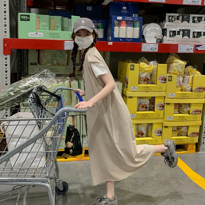无袖卫衣连衣裙两件套女夏季今年流行遮肉显瘦活泼减龄学院风套装