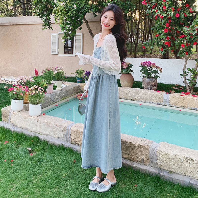 牛仔连衣裙女夏季今年流行时尚套装裙防晒开衫吊带裙子两件套