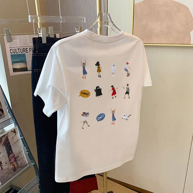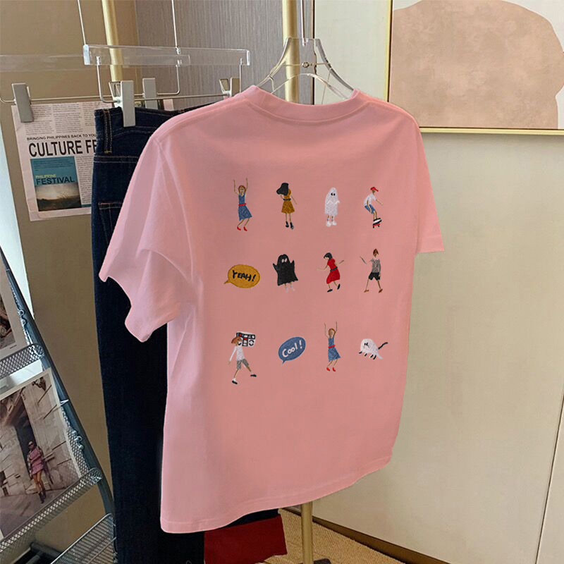2025夏季新款灰色纯棉短袖t恤女宽松百搭休闲卡通印花小个子上衣