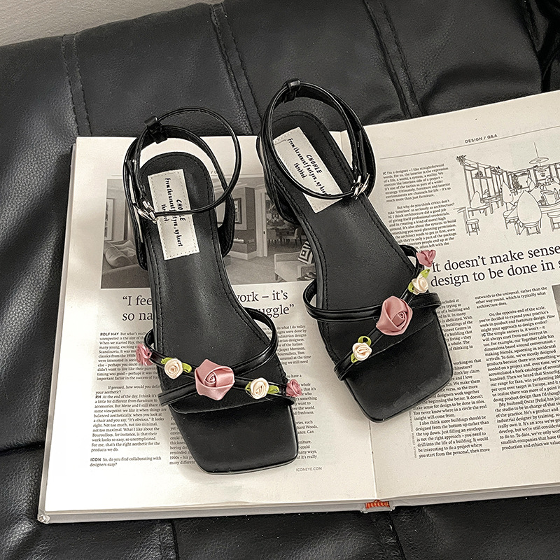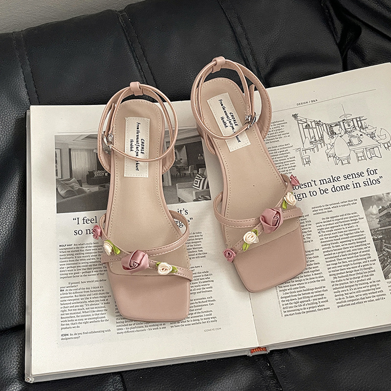 甜美风高跟凉鞋女2025新款花朵交叉带高跟鞋夏季配裙穿玛丽珍单鞋