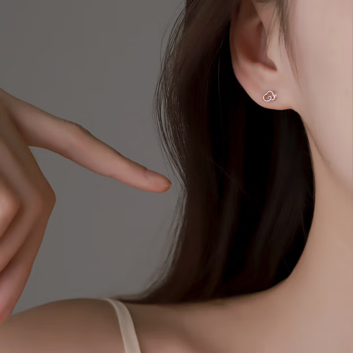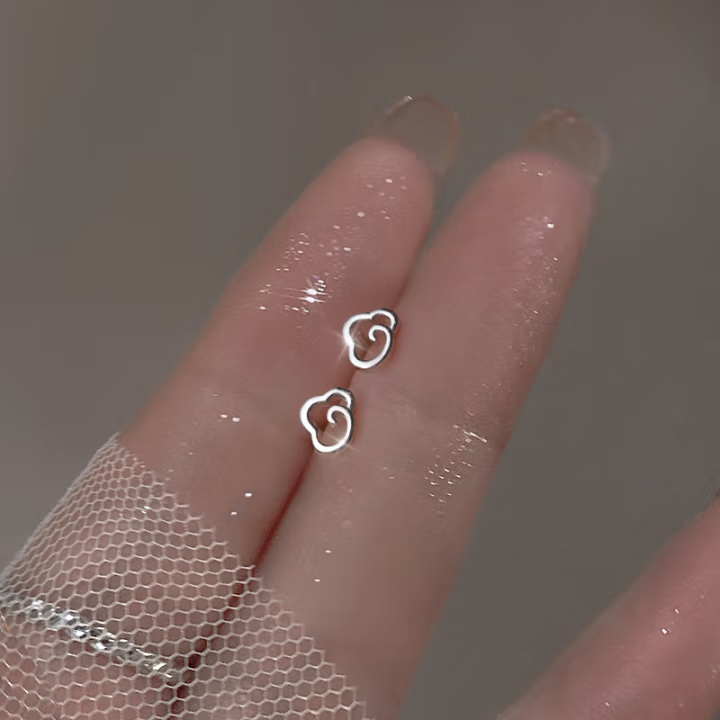 S925银云朵耳钉女养耳洞时尚潮流高级感气质耳饰防堵耳针睡觉免摘