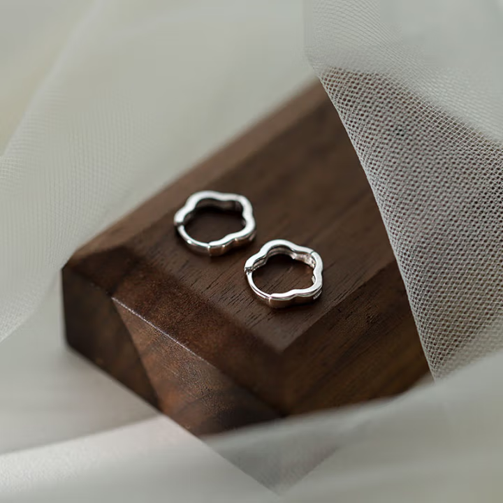 S925银花朵耳扣时尚潮流高级感气质耳饰耳钉养耳洞睡觉免摘防堵