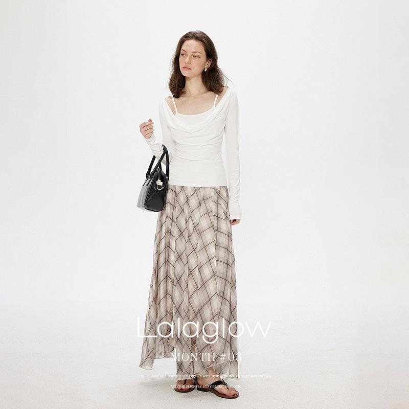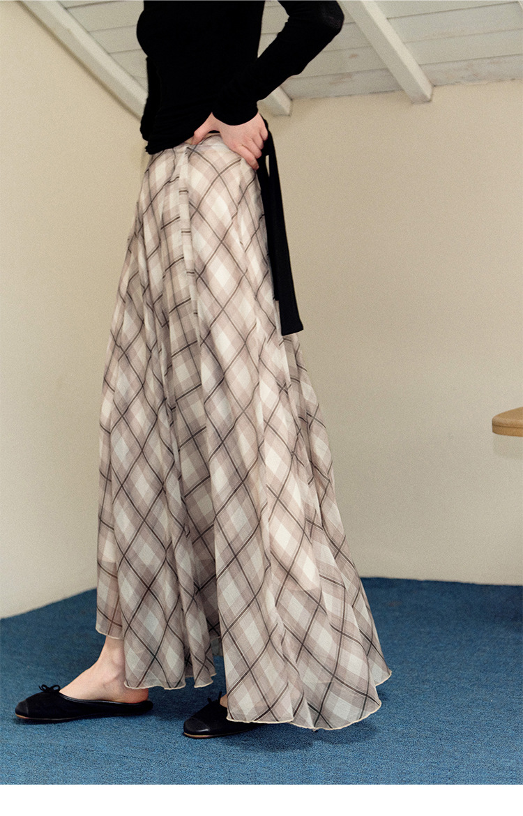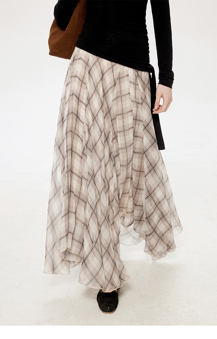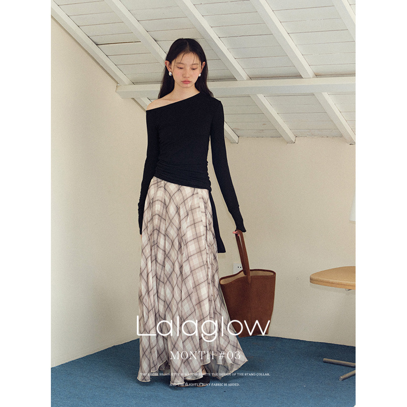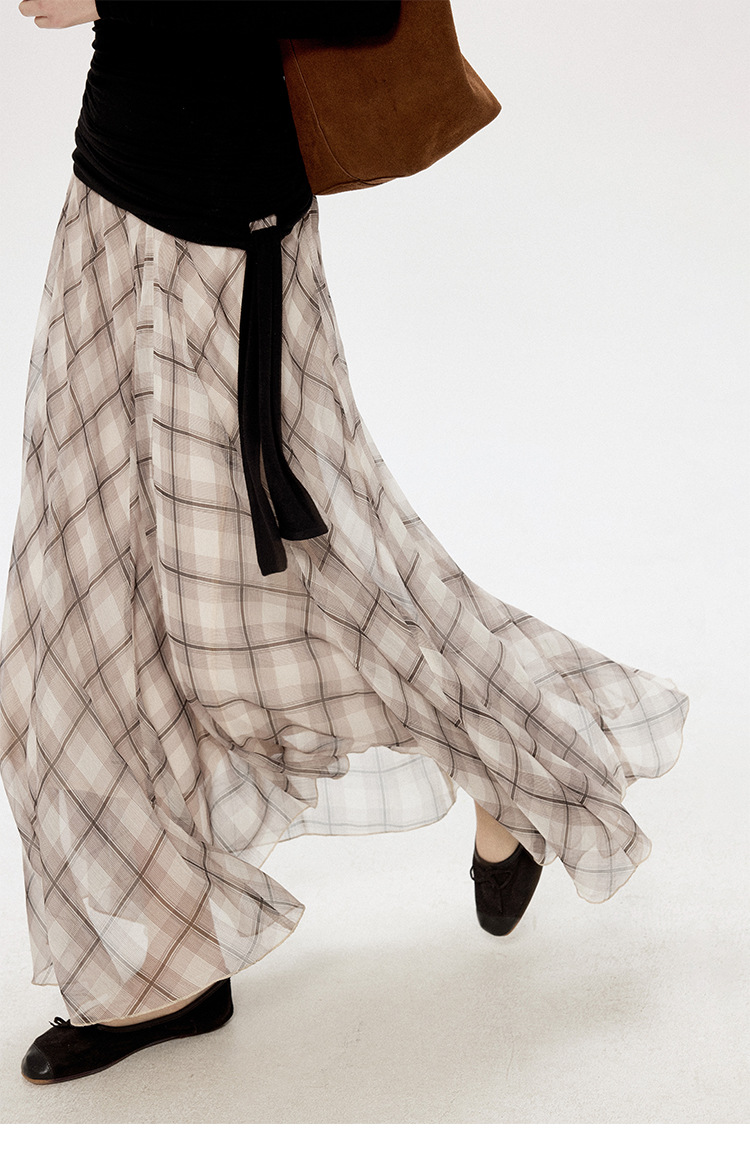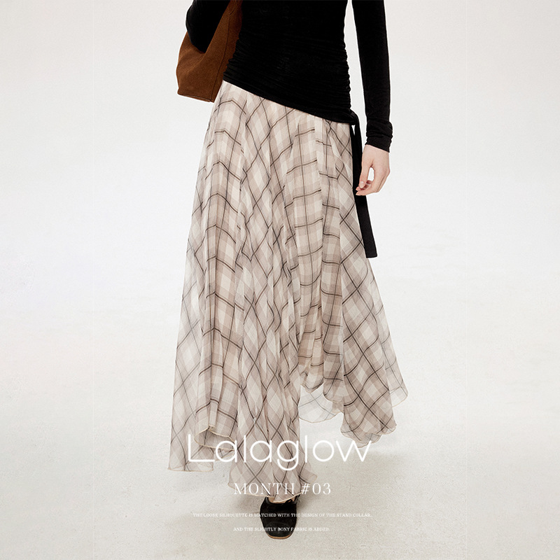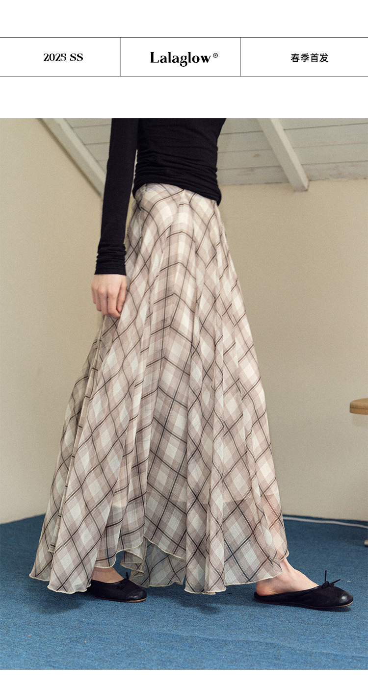 Lalaglow 时光旅人 温柔风垂坠宽松显瘦格纹半身裙女休闲百搭长裙