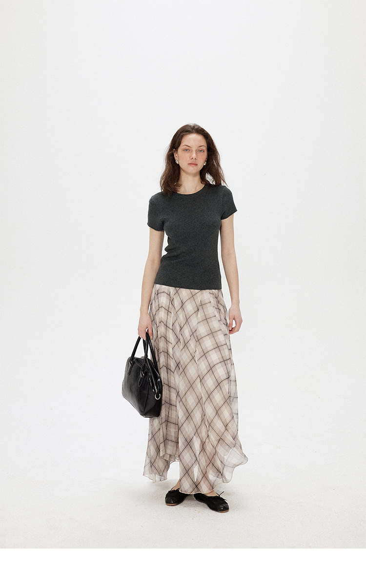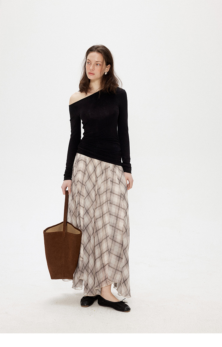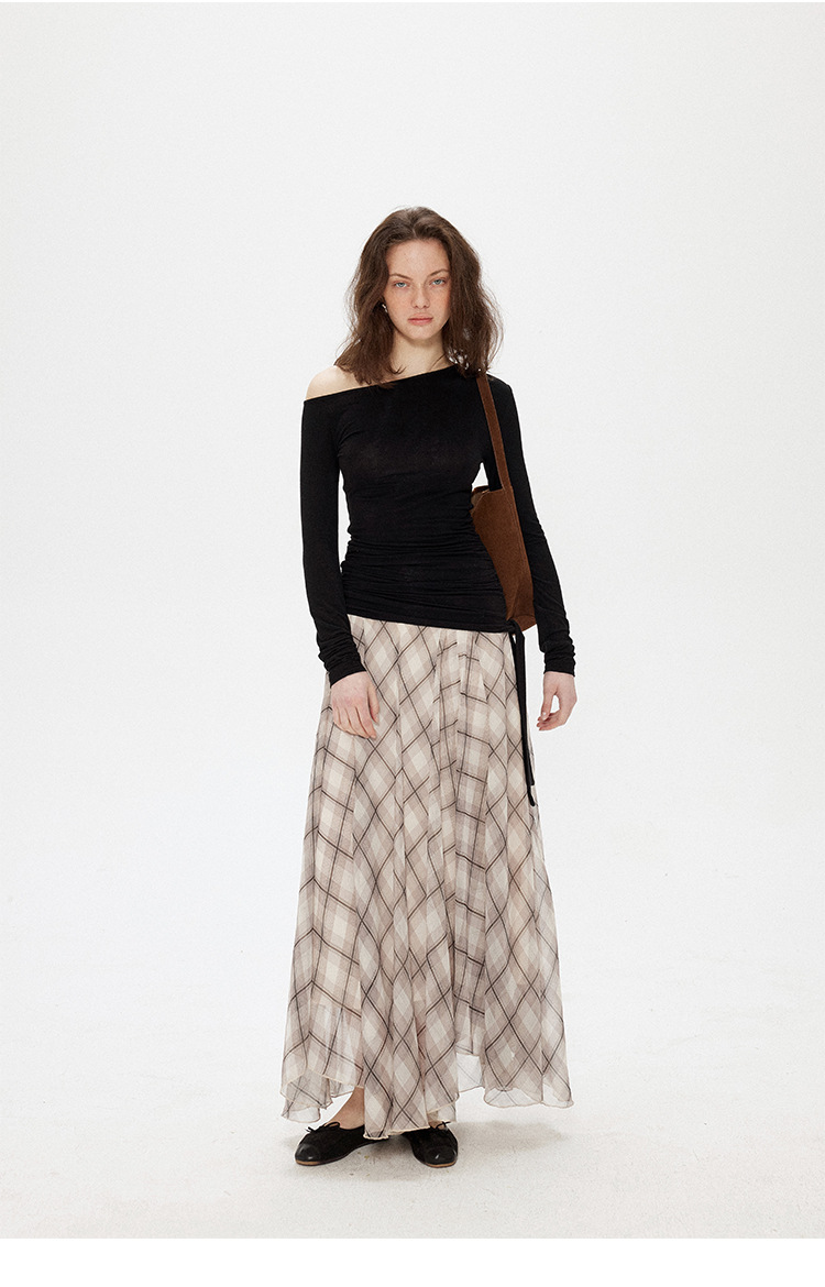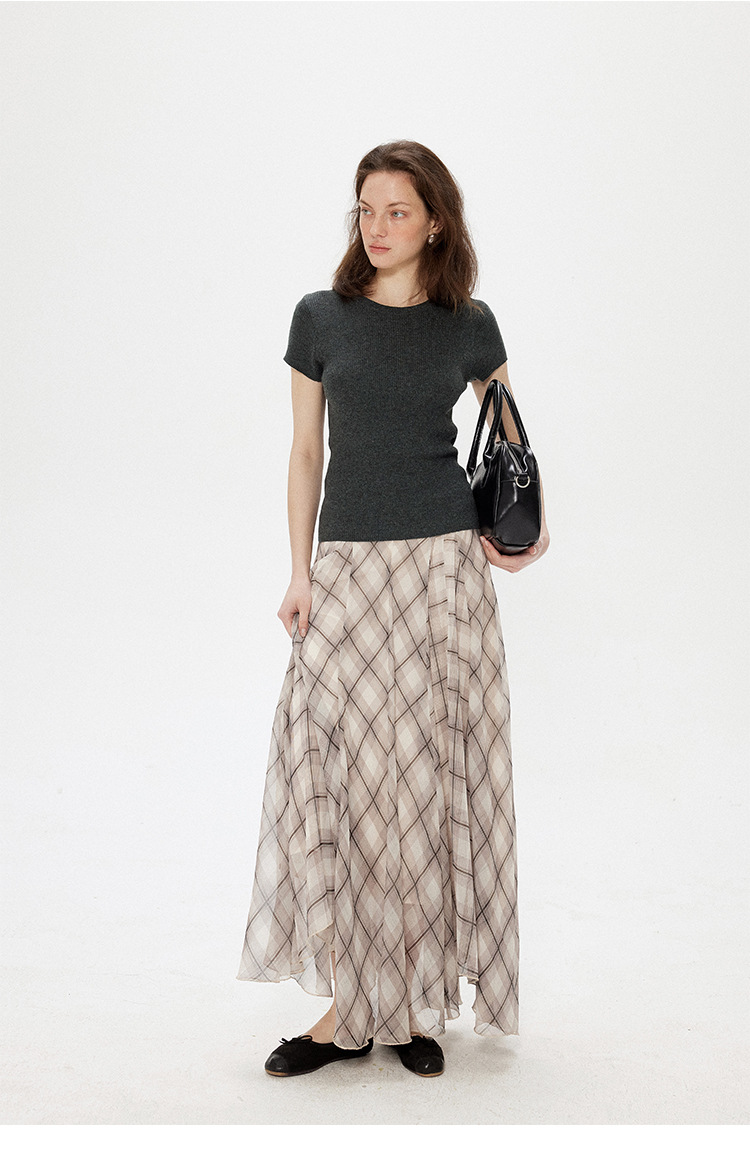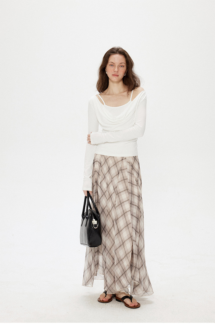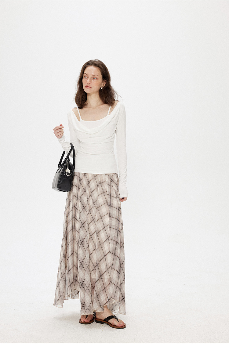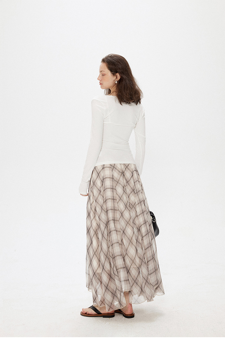 Lalaglow 时光旅人 温柔风垂坠宽松显瘦格纹半身裙女休闲百搭长裙