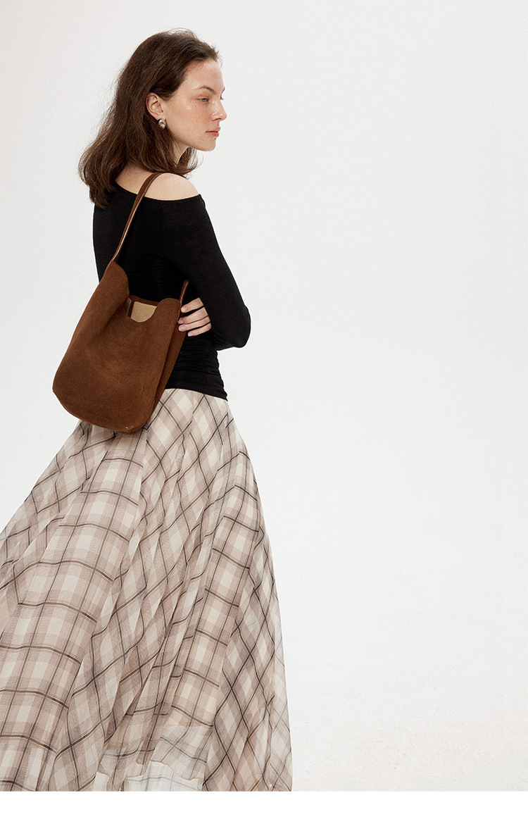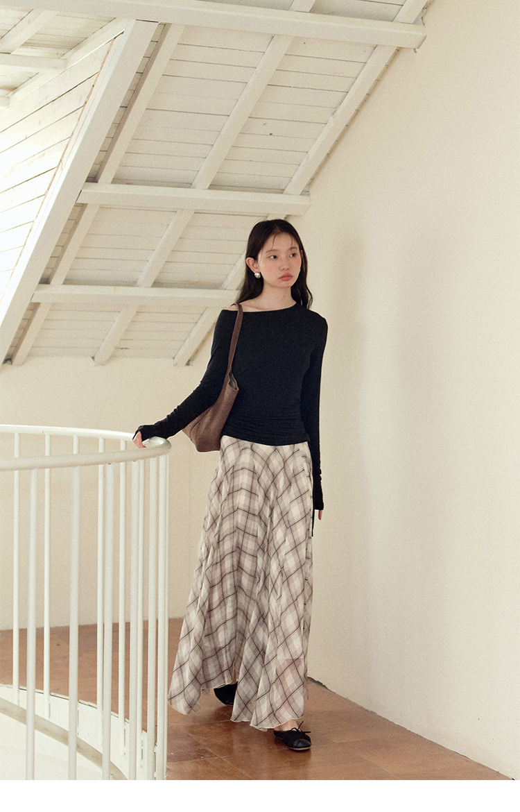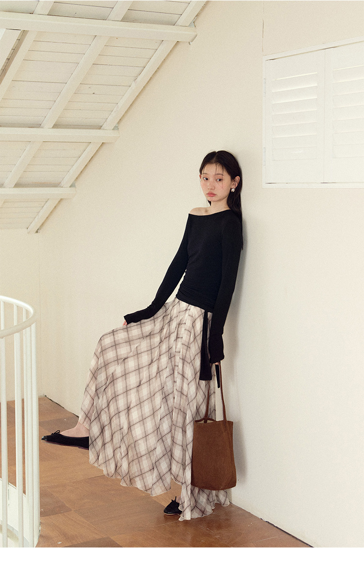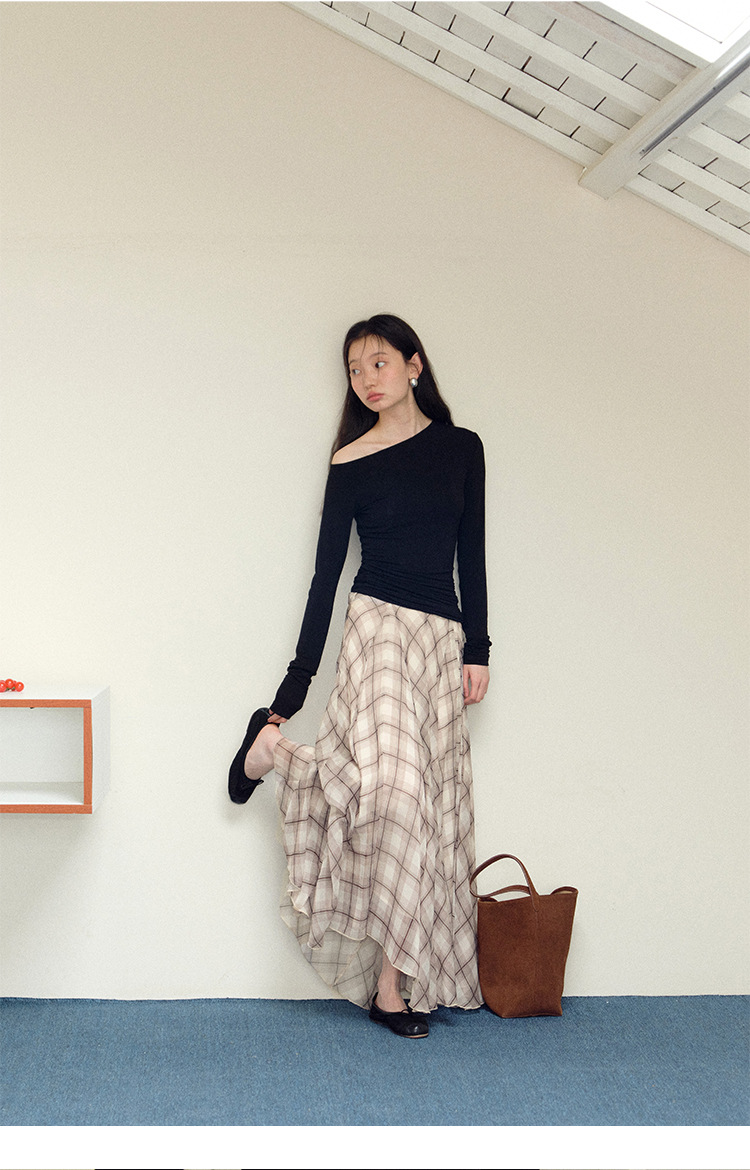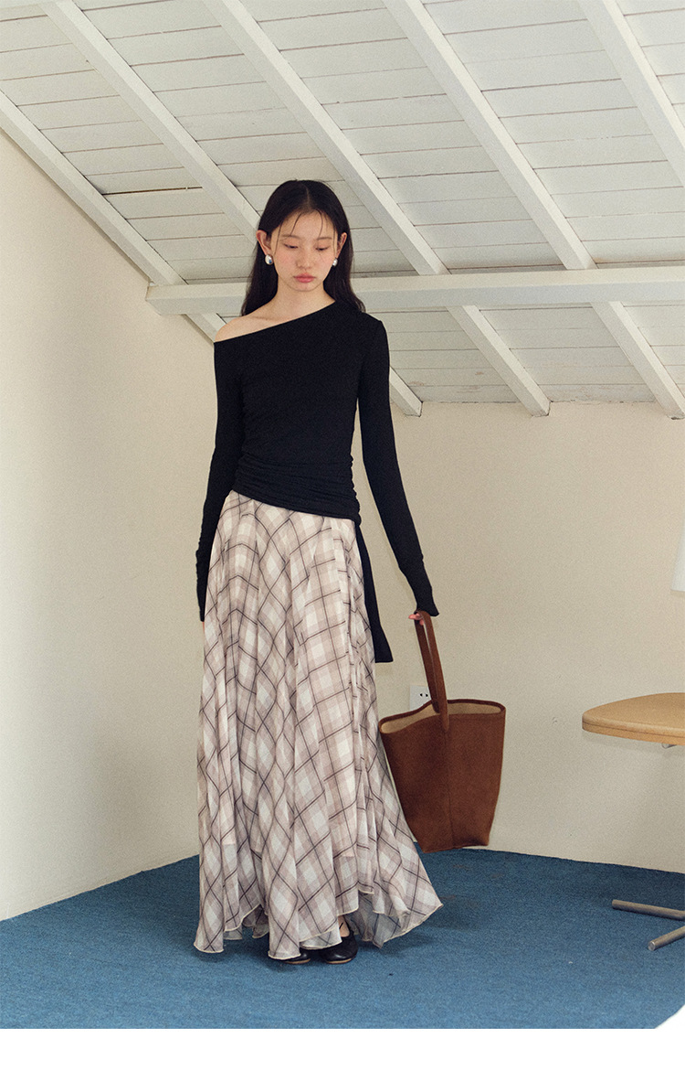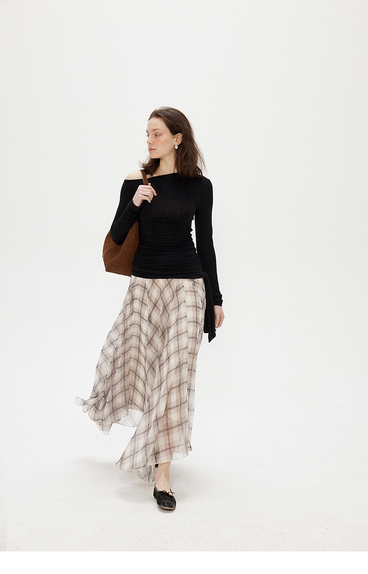 Lalaglow 时光旅人 温柔风垂坠宽松显瘦格纹半身裙女休闲百搭长裙
