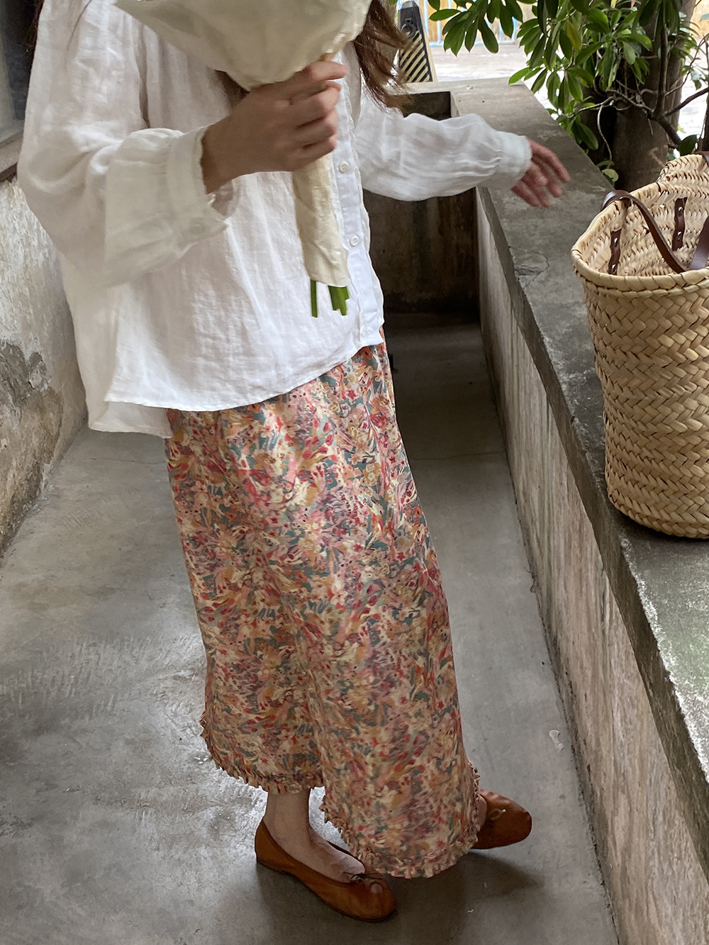 2025SS油画裙碎花天丝木耳边短裙中长半身裙女