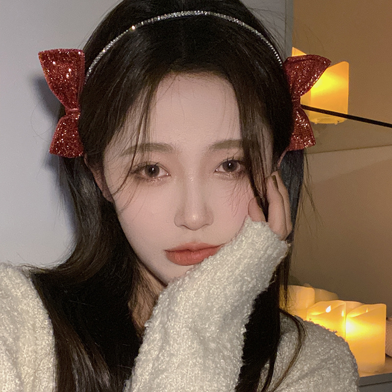 红色新年闪亮双侧边蝴蝶结发箍女chic风气质网红甜美外出百搭发饰