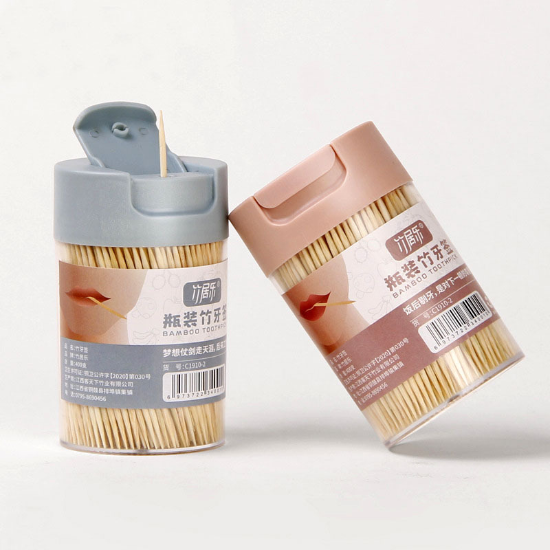 创意筒带牙签饭店家用牙签盒酒店餐厅透明竹牙签瓶牙签筒400支装