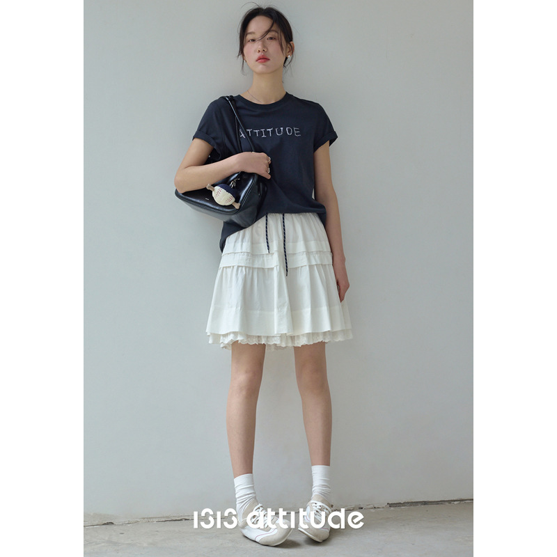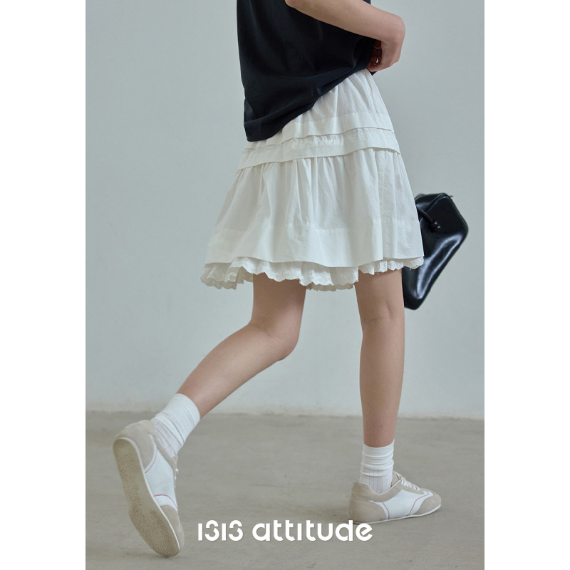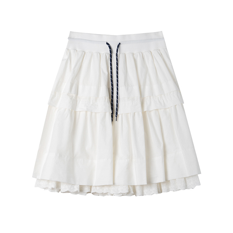 白月光活力A字层次花边30%莫代尔小白裙夏日女抽绳半身裙短裙