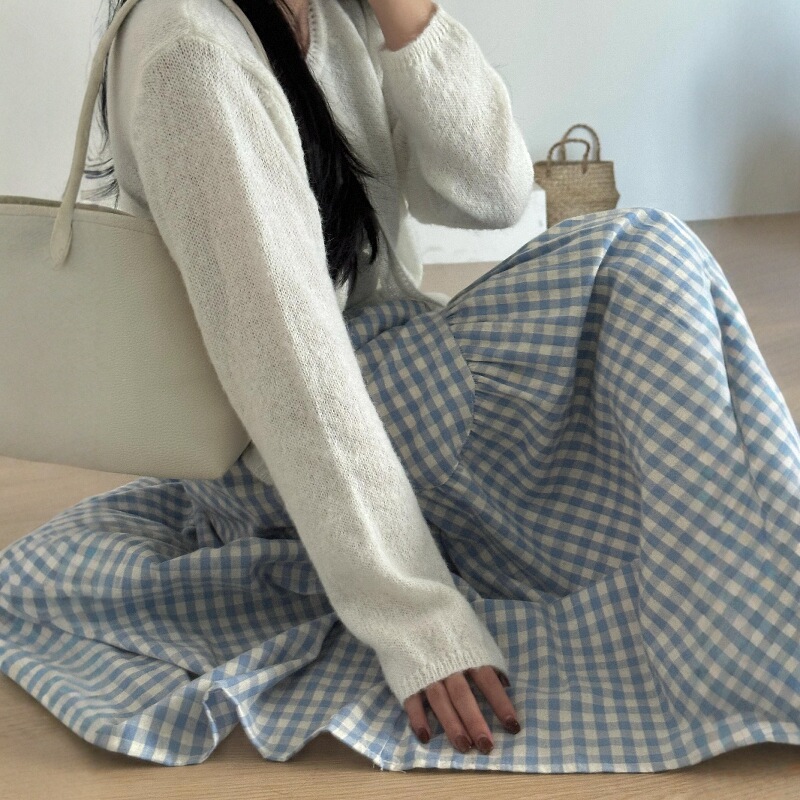 baby蓝半身裙2025新款拼接格子裙大码胖mm梨型身材遮胯大摆a字裙
