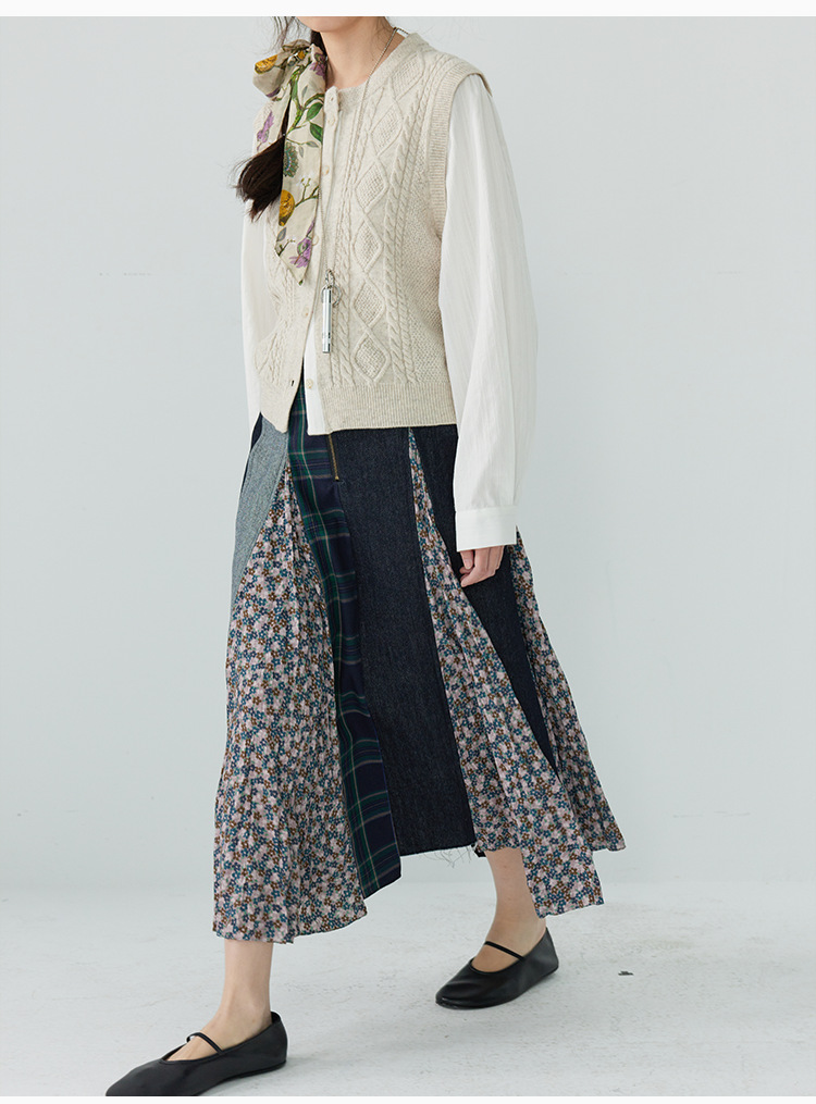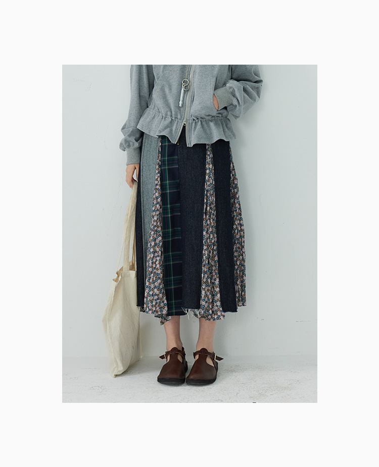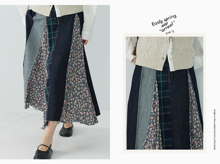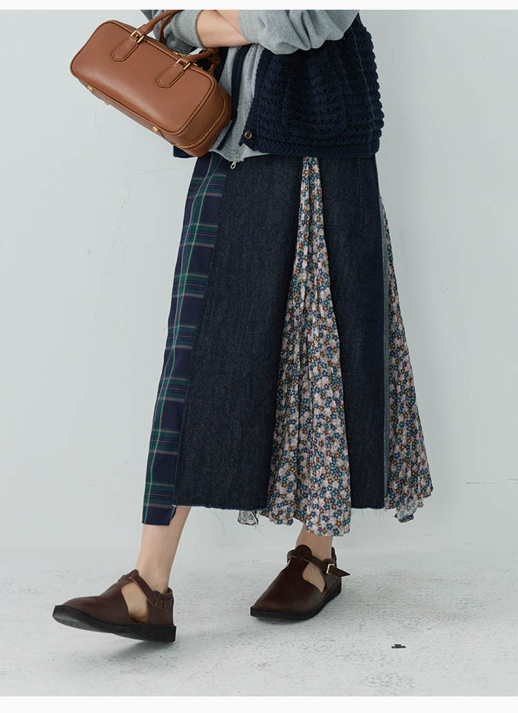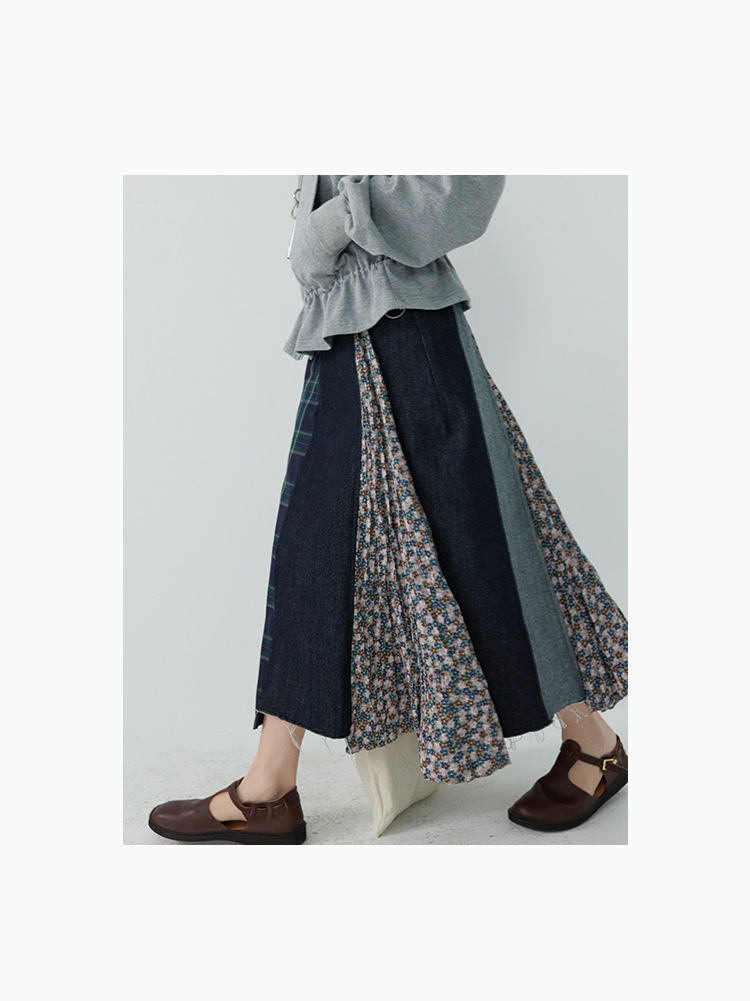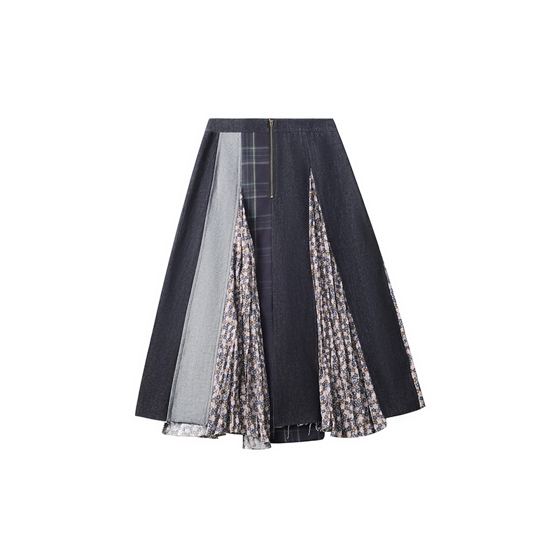 「白描工作间」'奥利弗特区'日系流浪风设计拼接a字半身裙牛仔裙