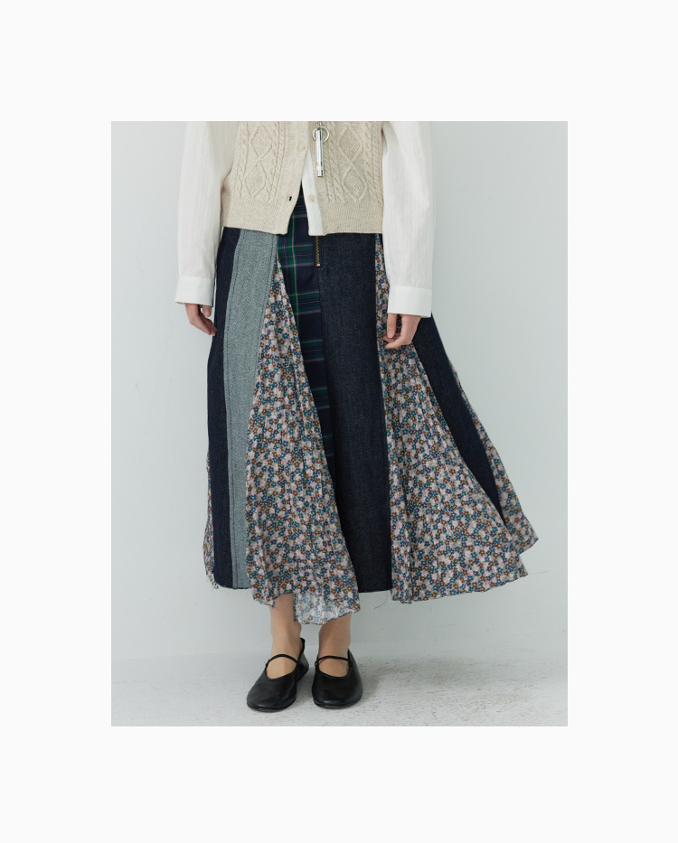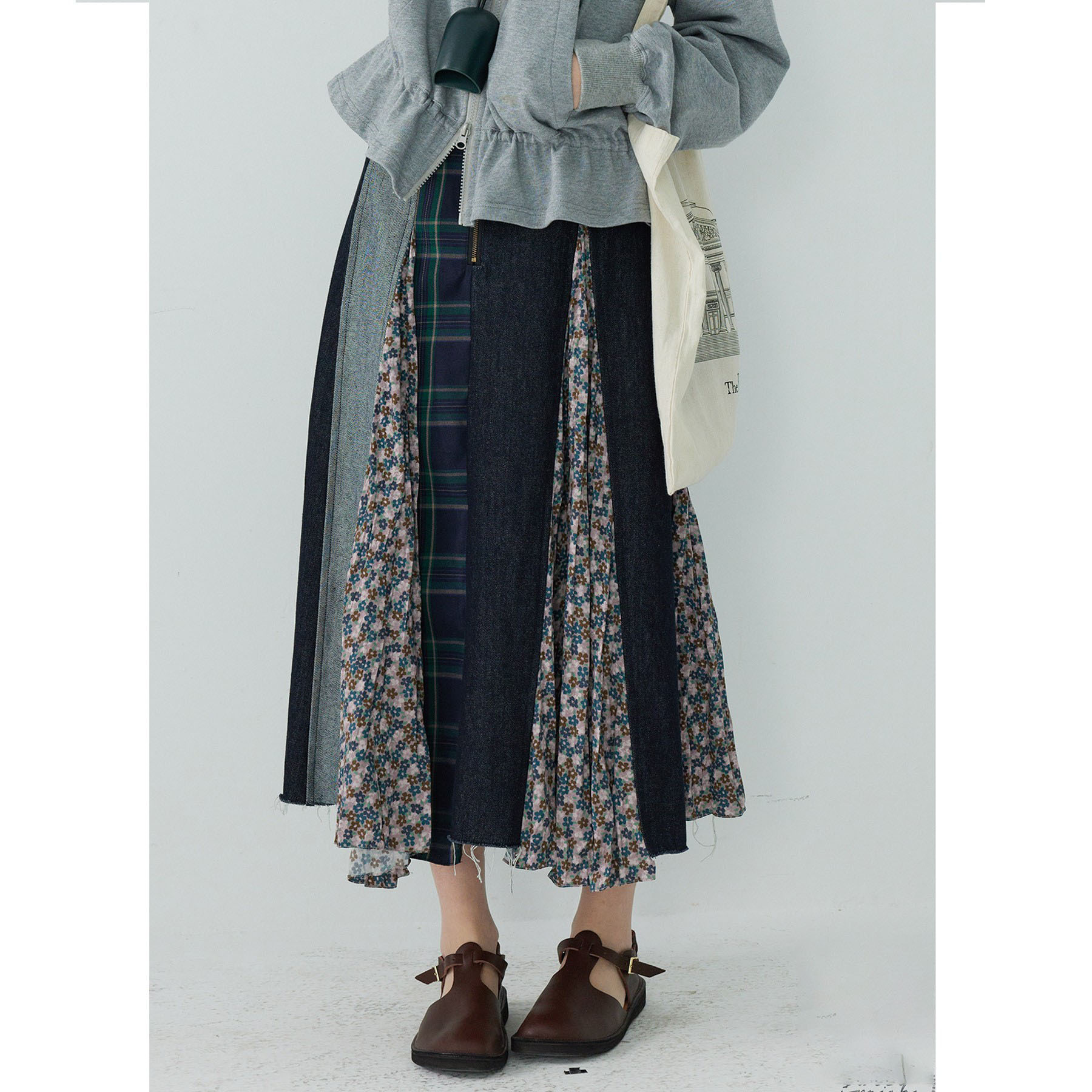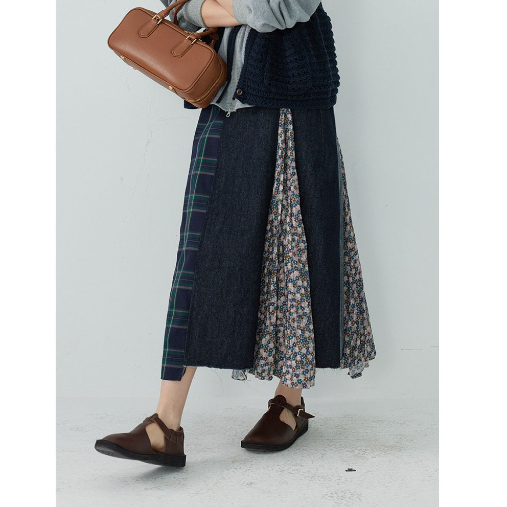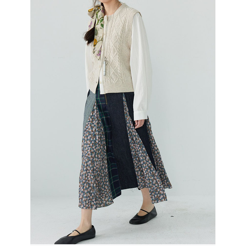 「白描工作间」'奥利弗特区'日系流浪风设计拼接a字半身裙牛仔裙
