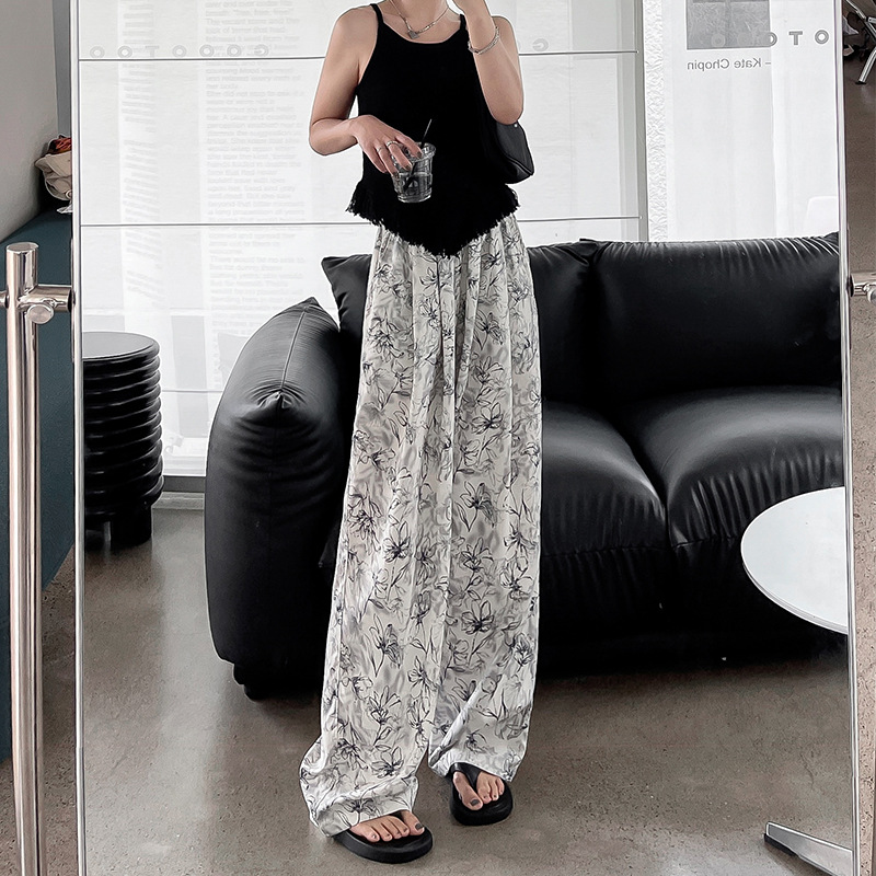冰丝阔腿裤女夏季新款高腰垂感水墨扎染直筒裤新中式禅意裤子