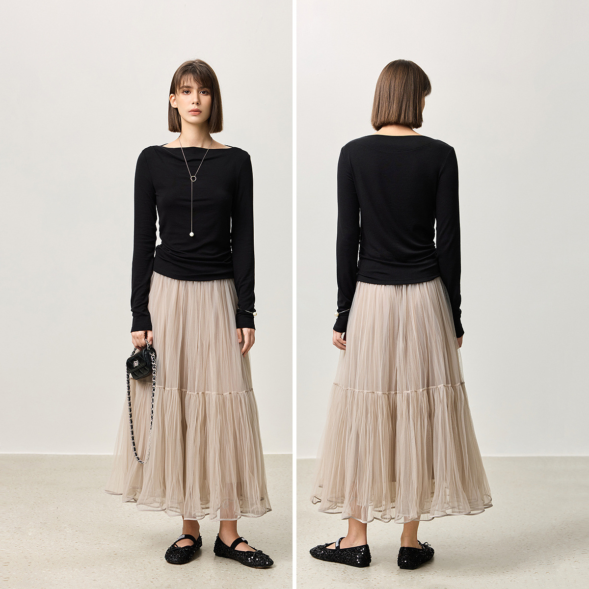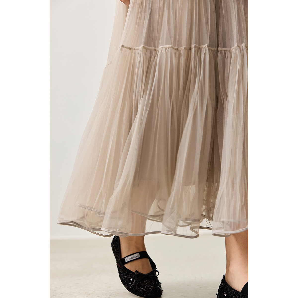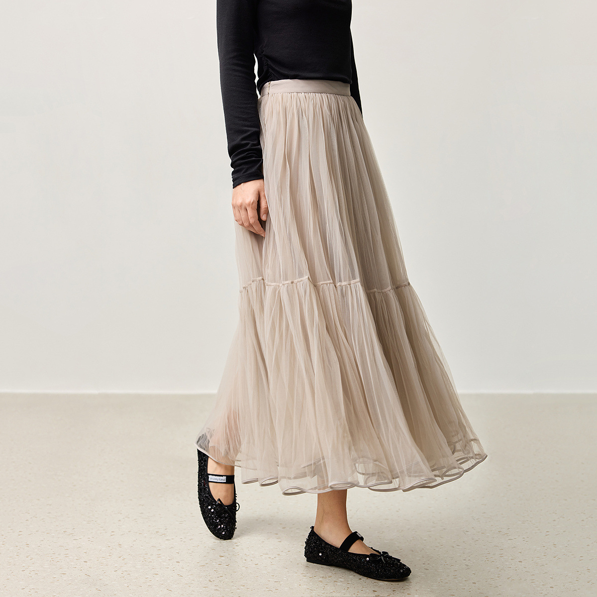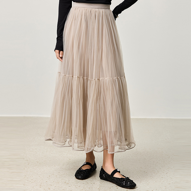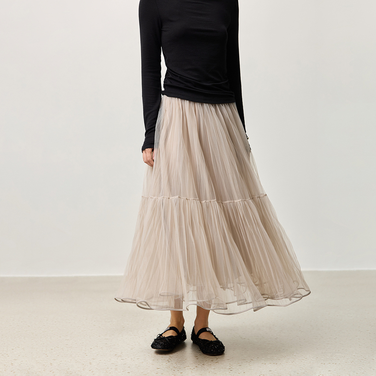 【商场同款】LILY2025春夏新款设计感不规则压褶轻盈蓬松半身裙女