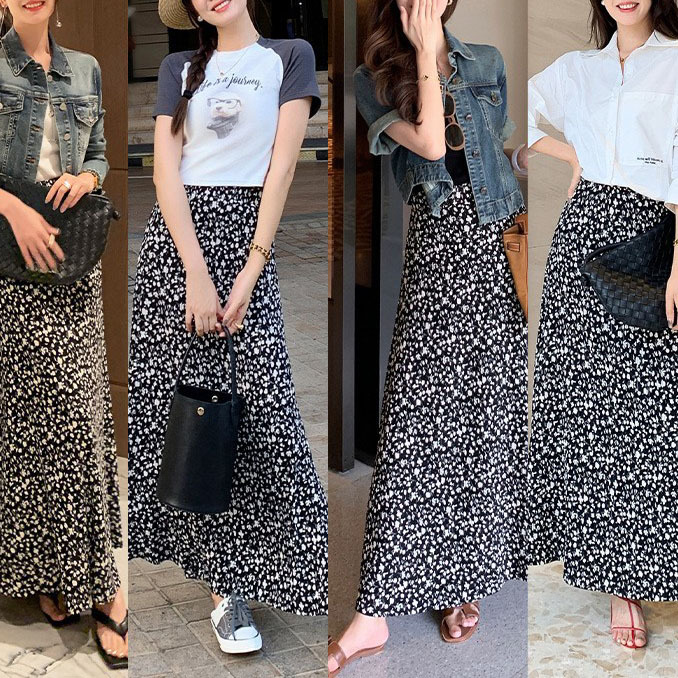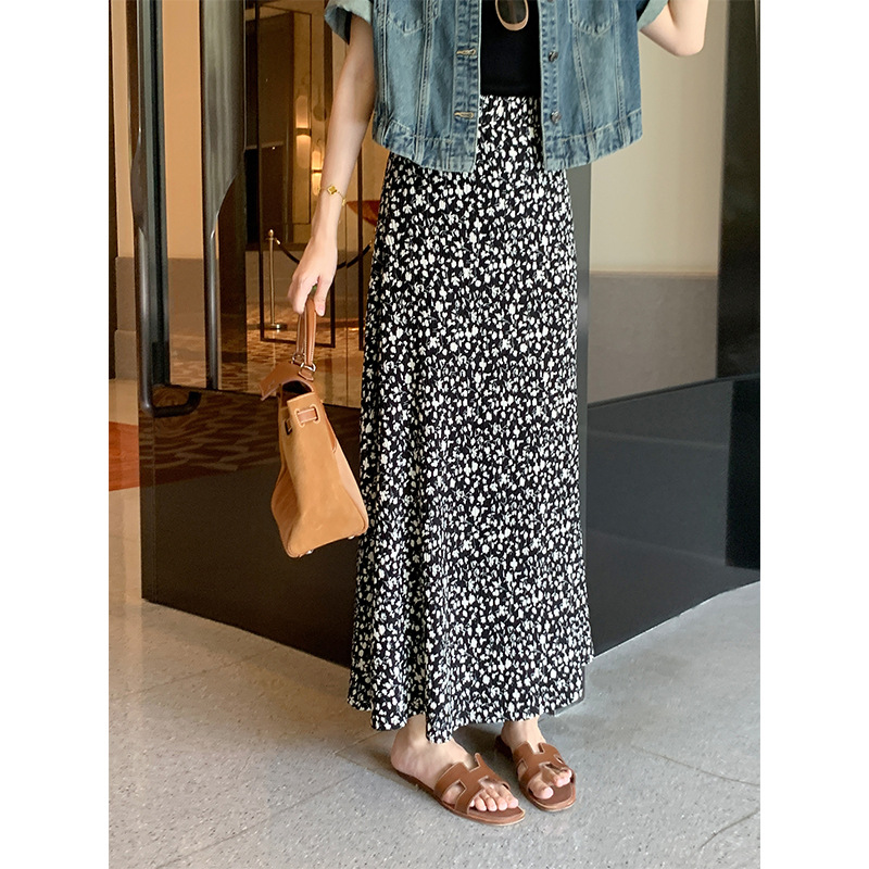 美洋MEIYANG 繁花半身裙 法式优雅度假风碎花中长款A字裙