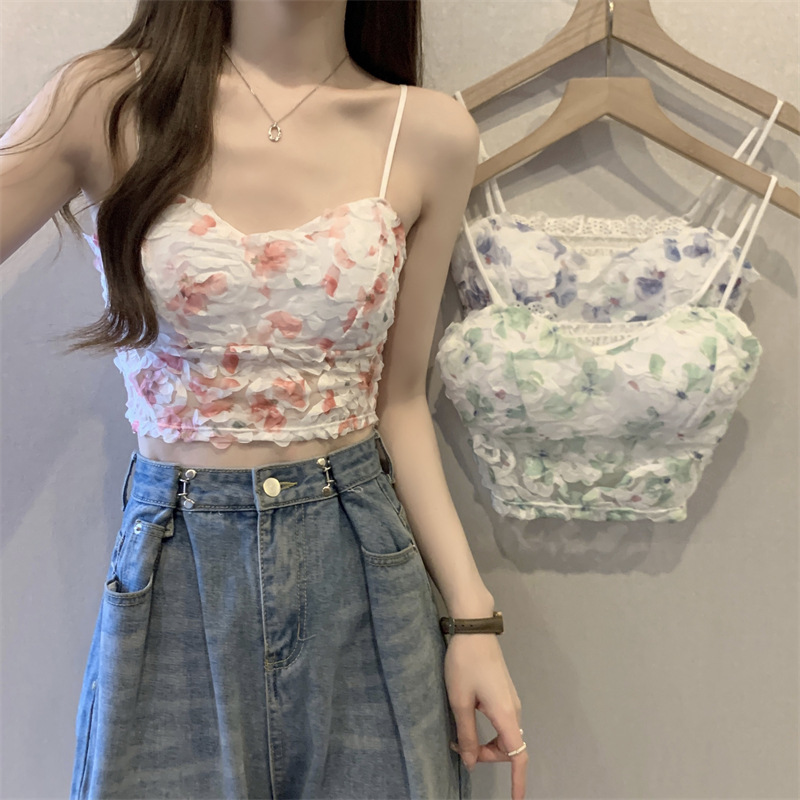 性感碎花蕾丝抹胸吊带背心裹胸女夏外穿内搭带胸垫防走光短款美背