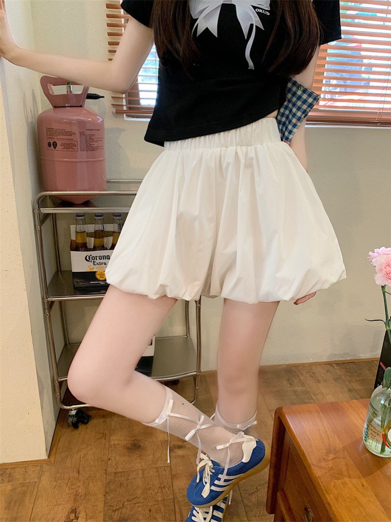 设计感花苞裙裤蓬蓬休闲裤女夏季甜美风短裤松紧腰阔腿裤白色裤子