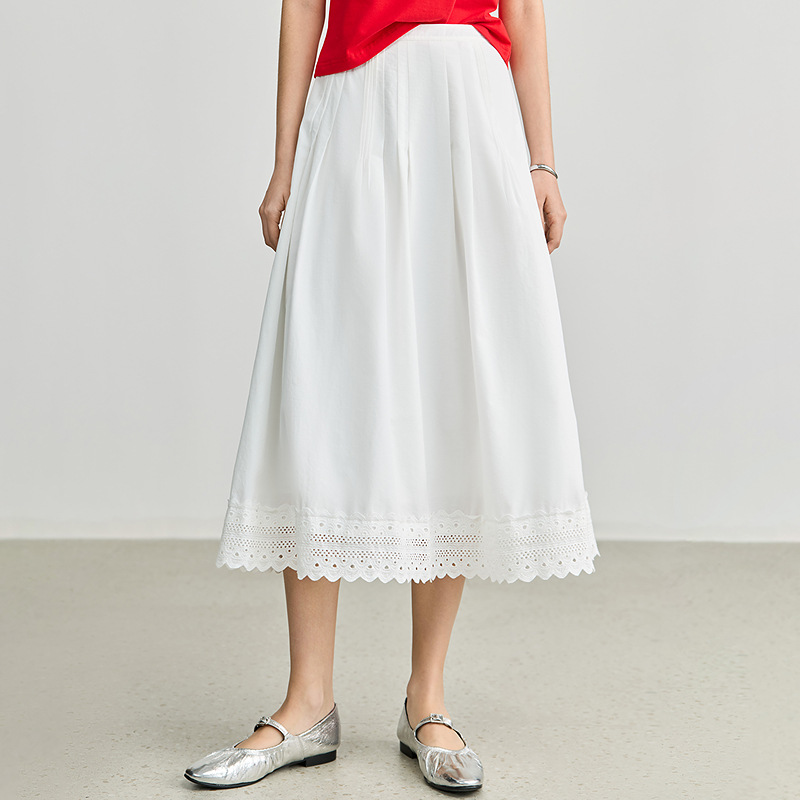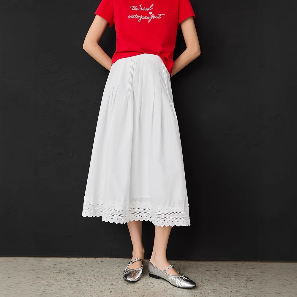 LILY2025春新款气质不对称轻薄宽松百搭白色半身裙小白裙女长款