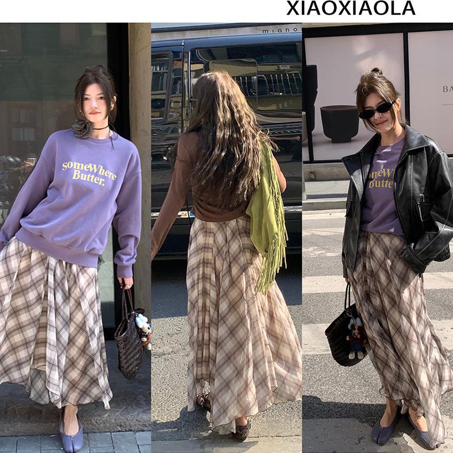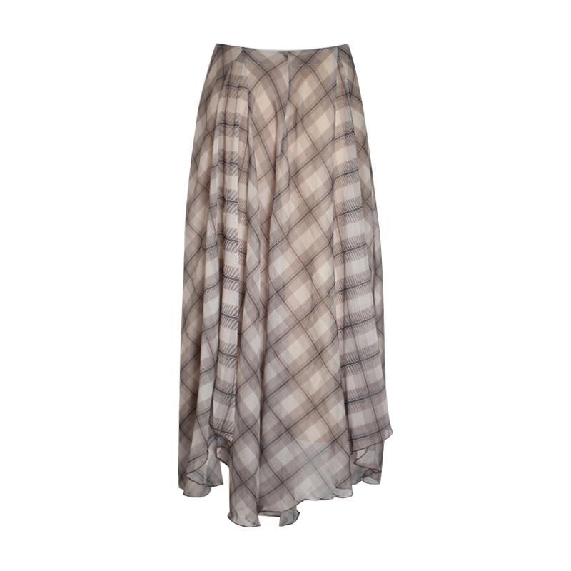 优雅复古不规则格纹纱裙文艺氛围感格子半身裙显瘦2025春夏新款