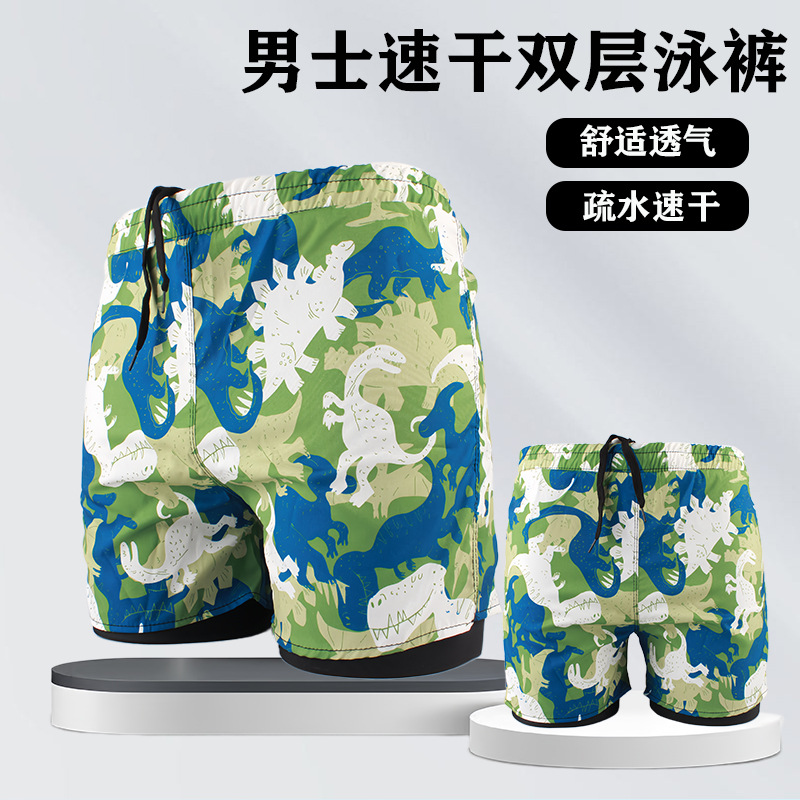 新款游泳裤男士高弹速干双层防尴尬新款平角沙滩裤泡温泉泳裤